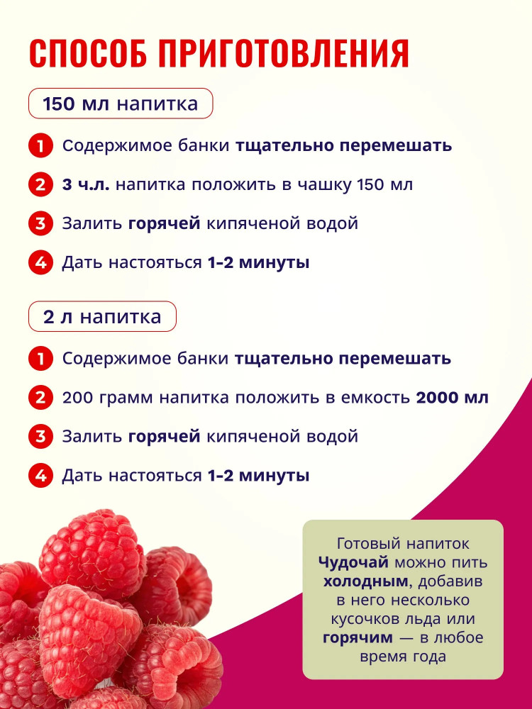 Borhill Напиток чайный растворимый со вкусом малины и еживики «Чудочай»