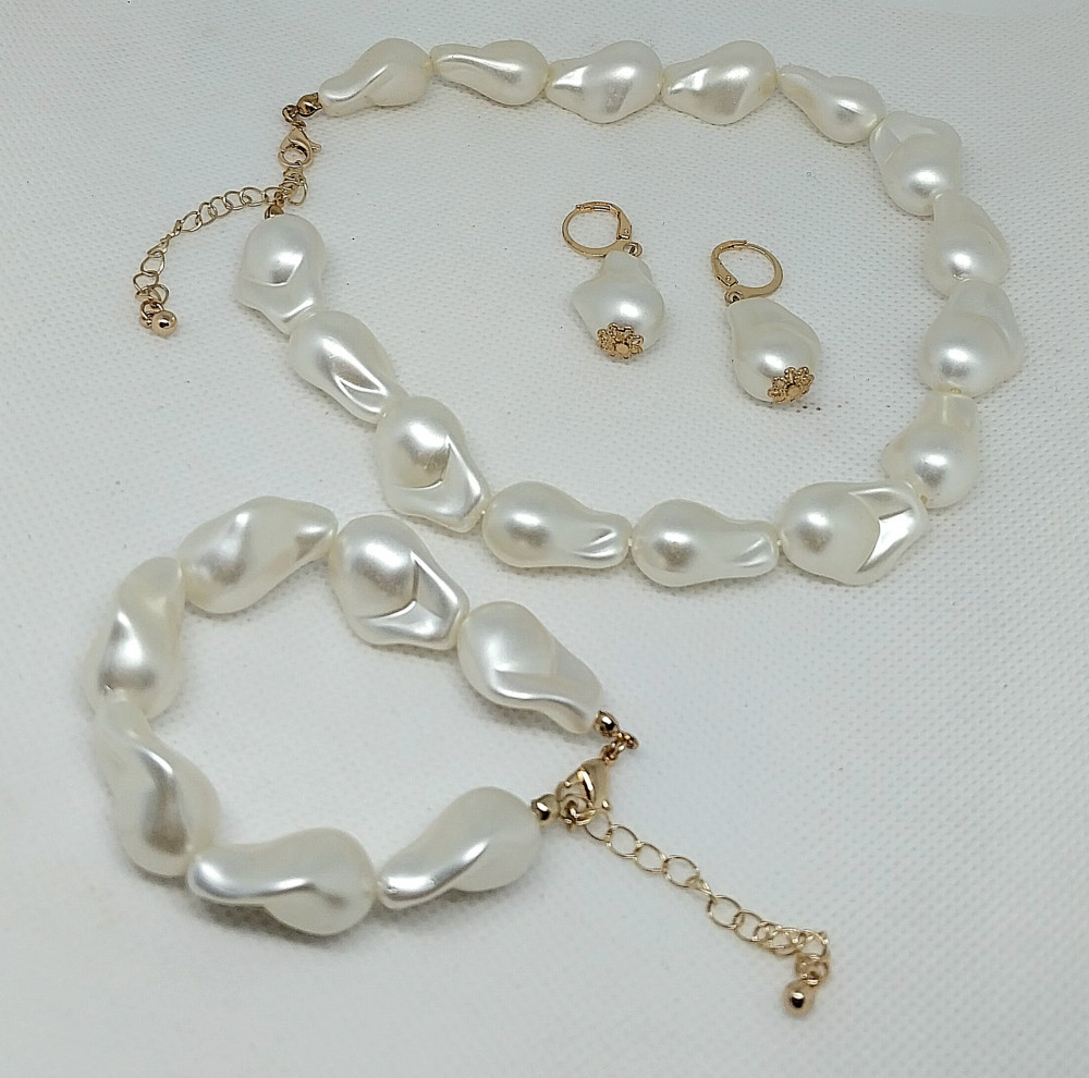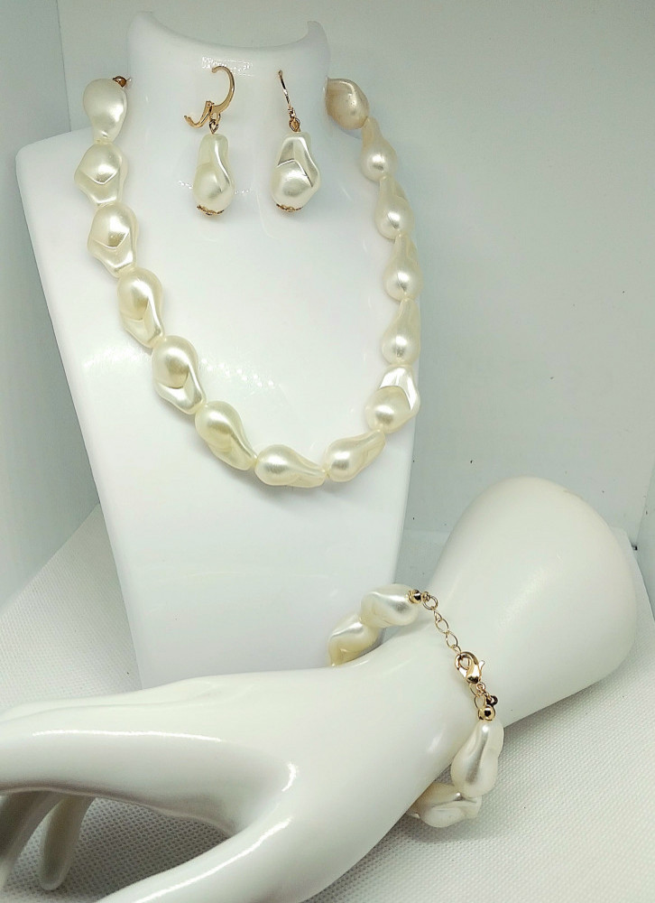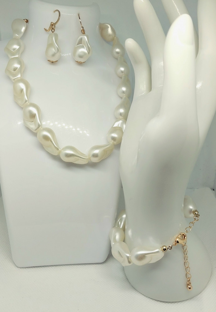 Гарнитур «Ожерелье, браслет, серьги из бусин. Имитация жемчуга»