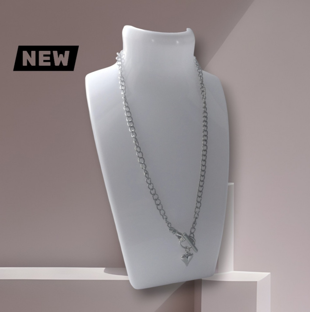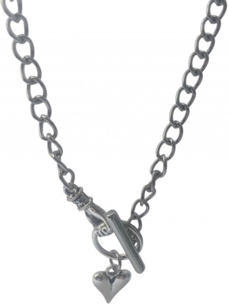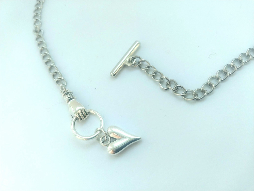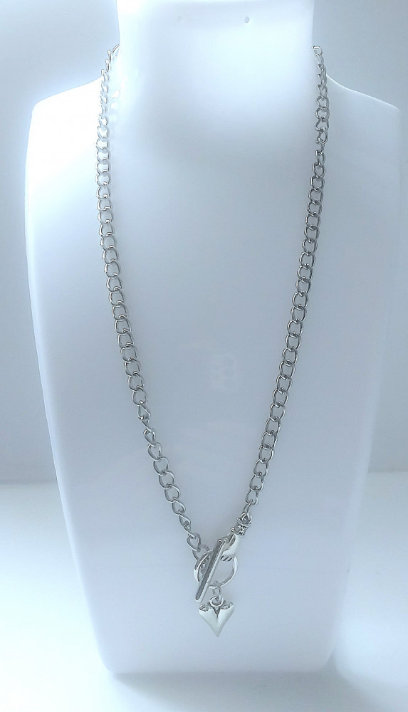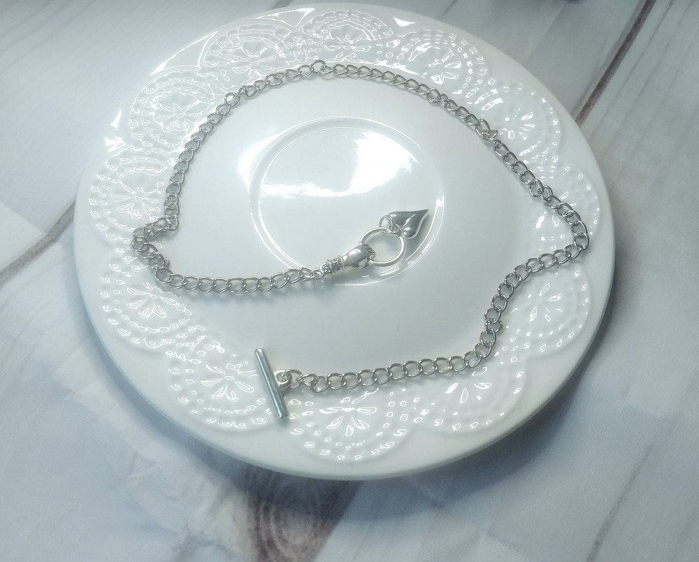 Цепочка ручной работы серебристого цвета с кулоном в форме сердце.