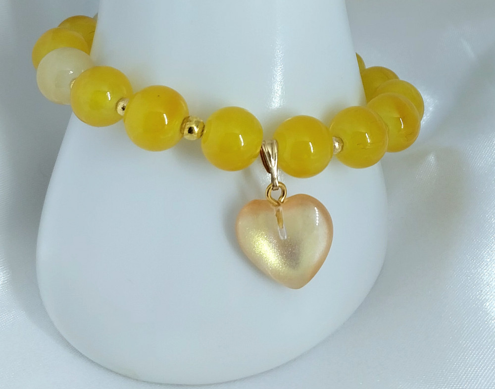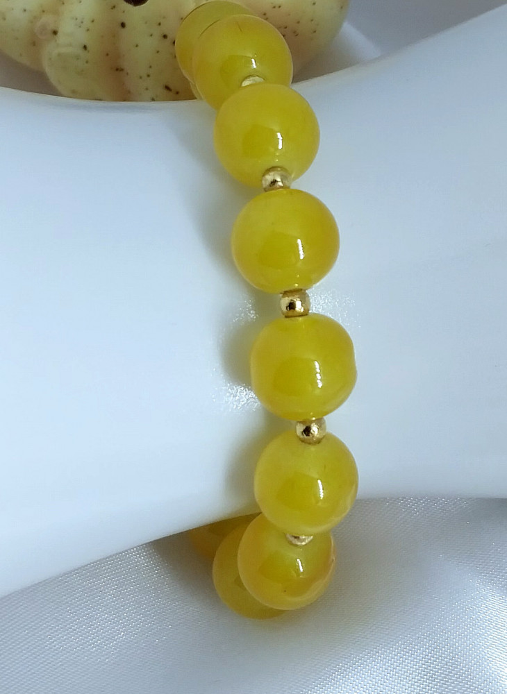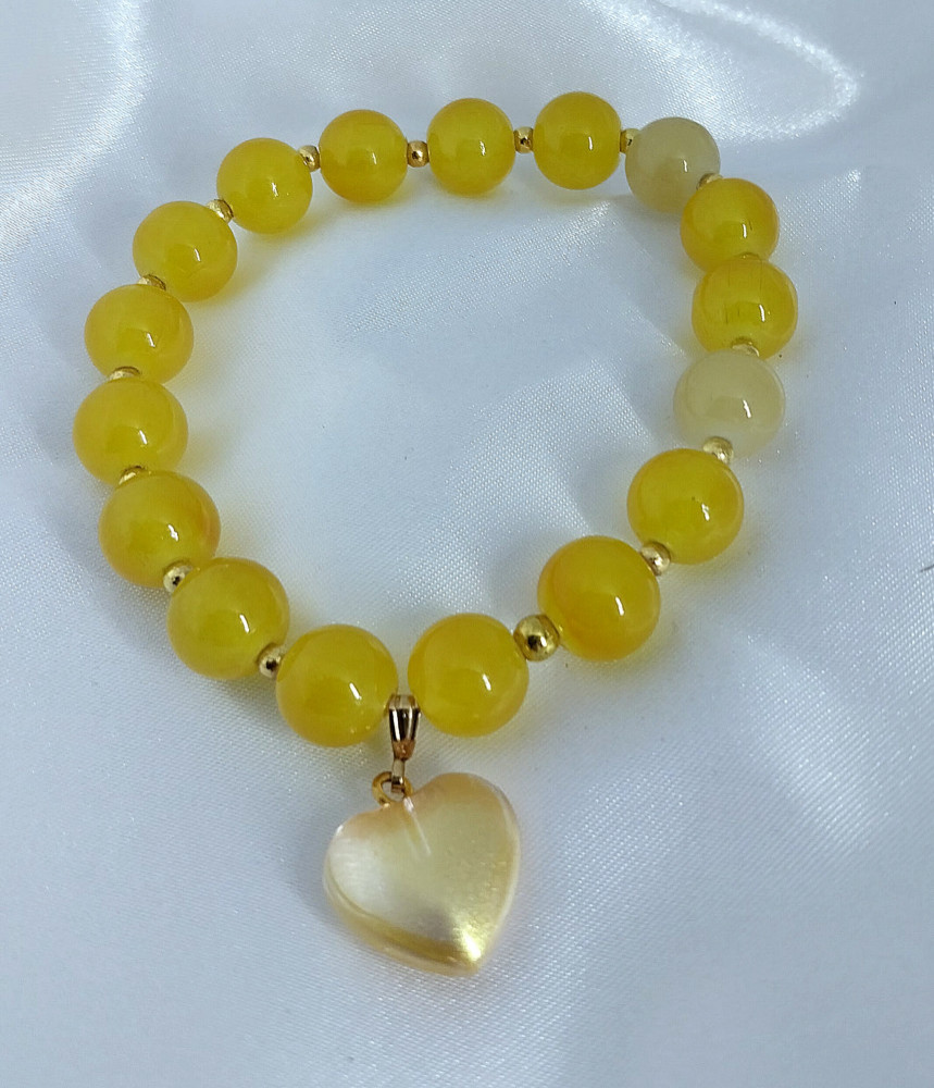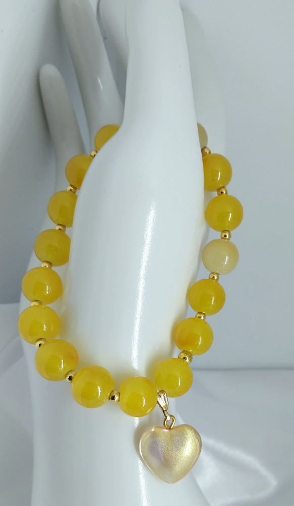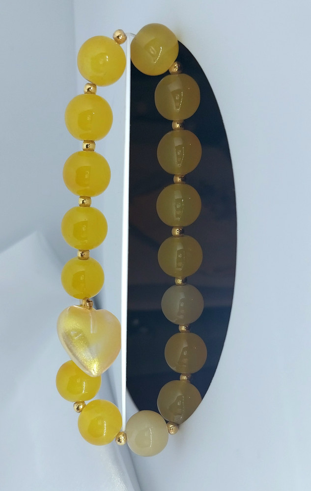 Женский браслет ручной работы из желтых бусин.