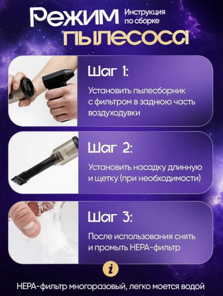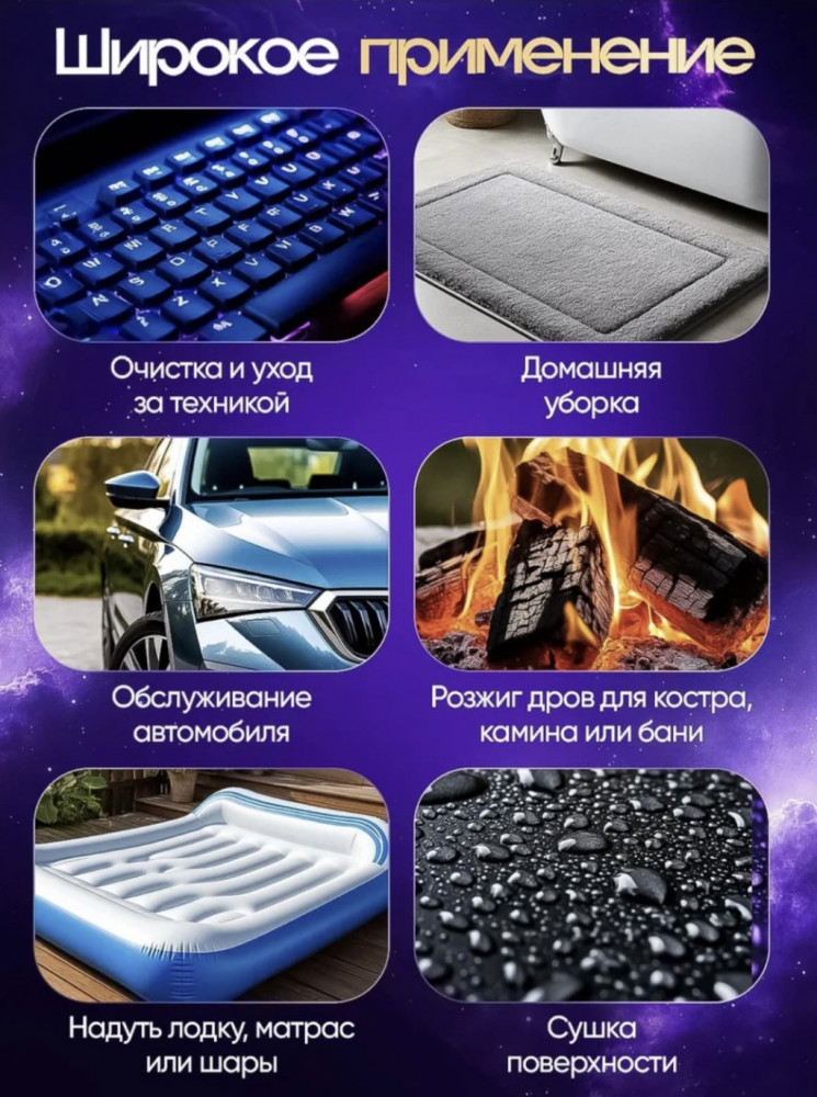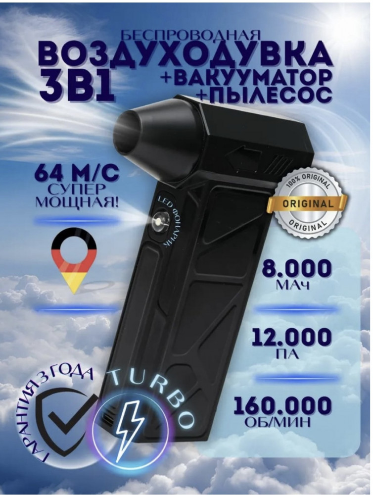 💳 Оплатить за товар можно при получении 🇰🇿 Есть бесплатная доставка по Казахстану от 1 дня 🎁 Копите бонусы с каждой покупки Беспроводная воздуходув — это универсальный и сверхмощный инструмент, который сочетает функции воздуходувки, вакууматора и пылесоса. Идеально подходит для быстрой и эффективной уборки. |