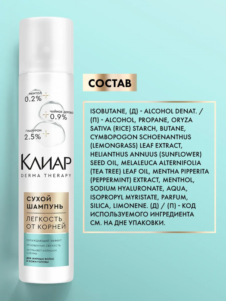 Клиар Сухой шампунь для объема волос с охлаждающим эффектом «Легкость от корней»