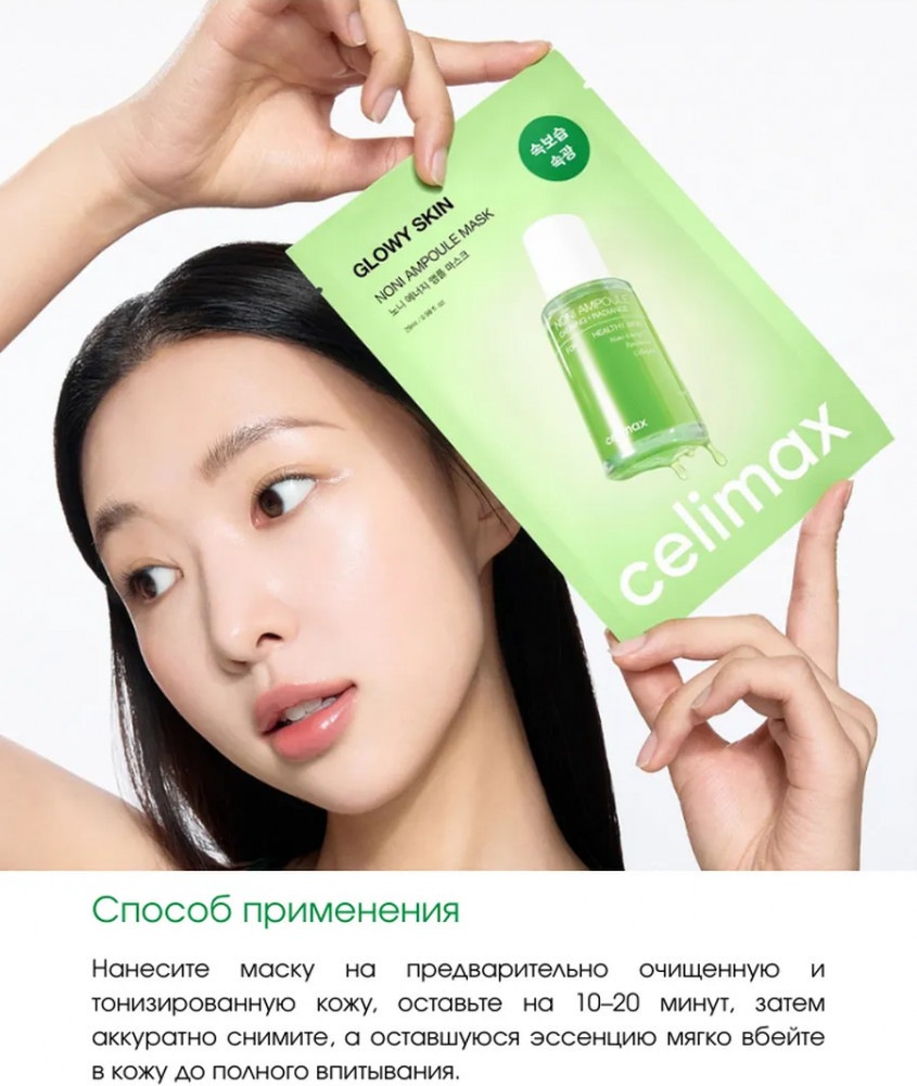Celimax Ампульная тканевая маска с экстрактом нони «Glowy Skin»