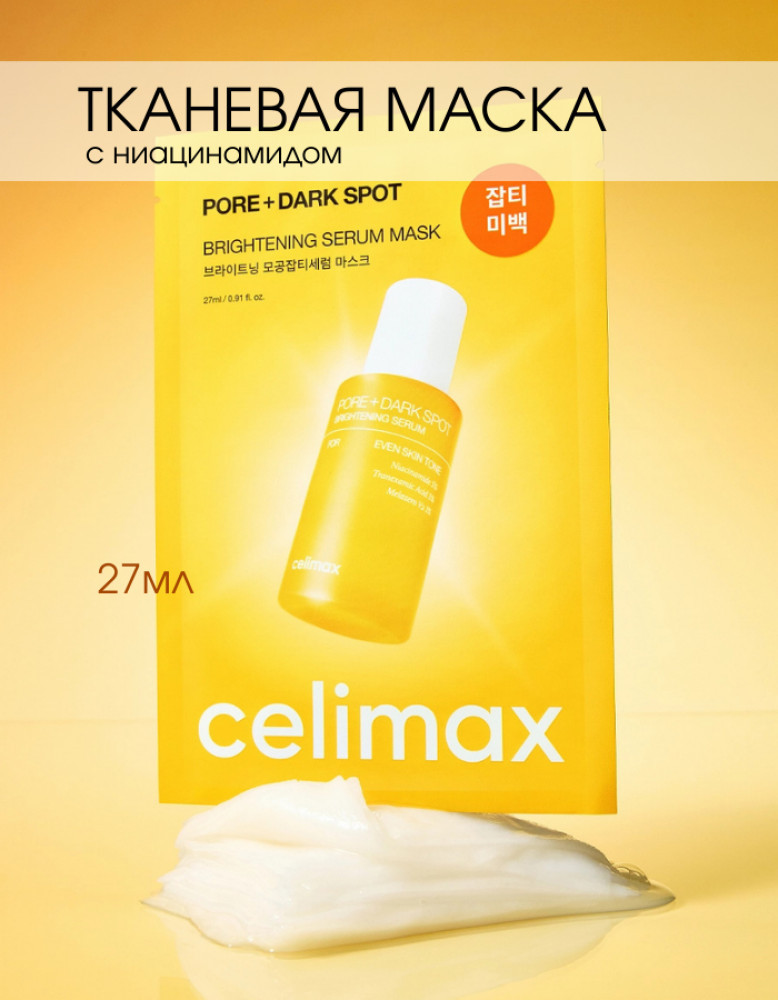 Осветляющая ампульная маска с ниацинамидом направлена на коррекцию тона кожи и устранение тусклости: снижает синтез меланина, предотвращает образование пигментных пятен и повышает устойчивость кожи к УФ-излучению и оксидативному стрессу.