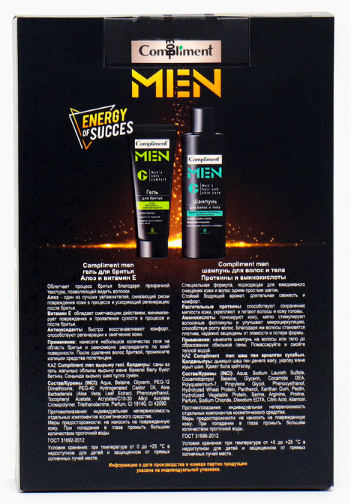 💳 Оплатить за товар можно при получении 🇰🇿 Есть бесплатная доставка по Казахстану от 1 дня 🎁 Копите бонусы с каждой покупки Подарочный набор косметики Compliment № 1811 «Big Boy» — практичный и стильный подарок для настоящего мужчины. В набор входят шампунь для волос 200 мл и гель для душа 200 мл. Средства мягко очищают кожу и волосы, дарят ощущение свежести и бодрости. Отличный вариант подарка для повседневного ухода с мужским характером. |