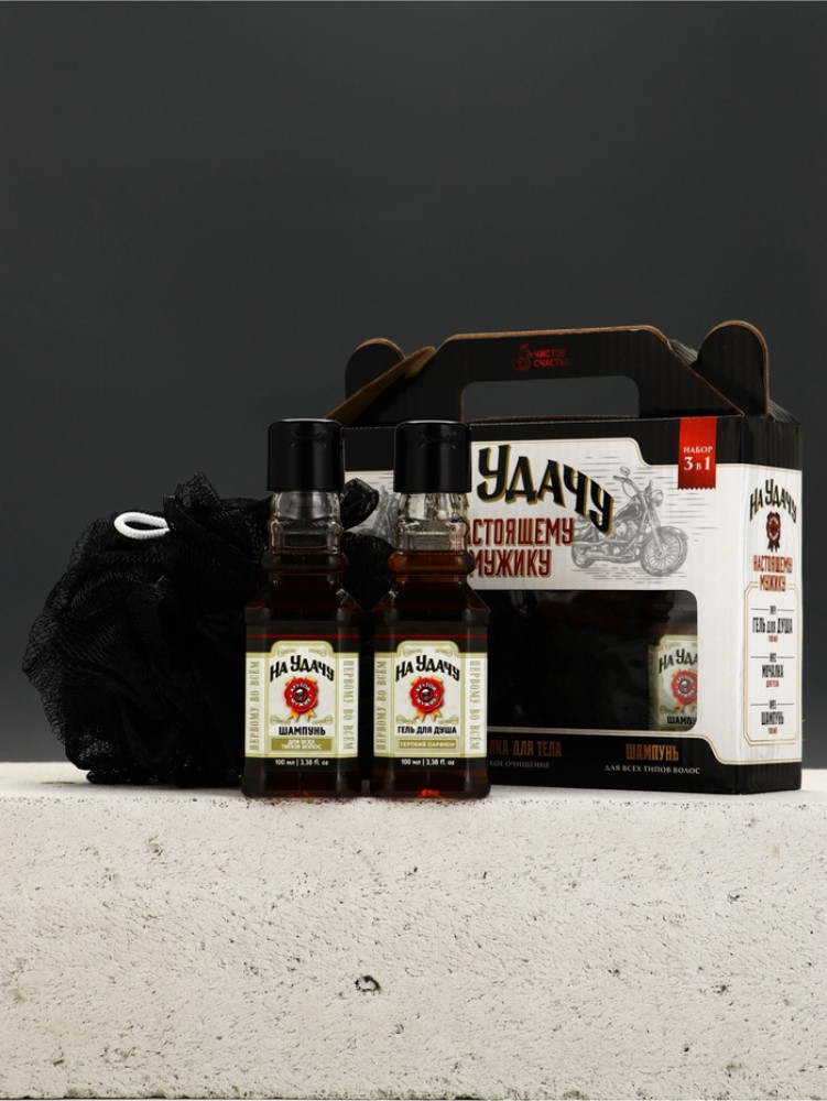 💳 Оплатить за товар можно при получении 🇰🇿 Есть бесплатная доставка по Казахстану от 1 дня 🎁 Копите бонусы с каждой покупки Подарочный набор мужской «На удачу», Чистое счастье — полный комплект для ухода и свежести настоящего мужчины. В набор входят гель для душа, шампунь для волос и мочалка для тела. Средства мягко очищают кожу и волосы, дарят ощущение бодрости и свежести, а мочалка усиливает комфорт во время водных процедур. Отличный вариант подарка с мужским характером и практичной ценностью. |