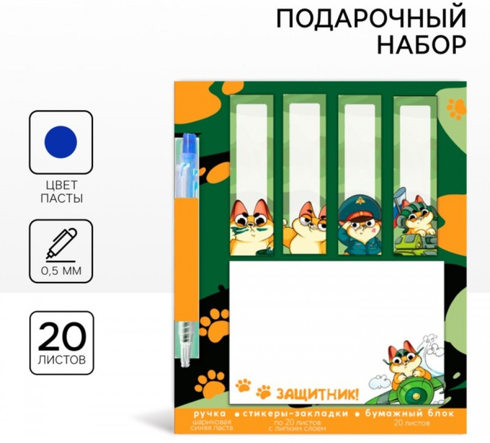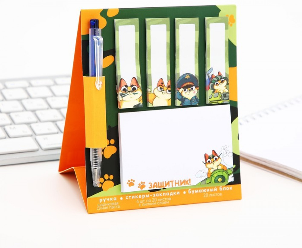 💳 Оплатить за товар можно при получении 🇰🇿 Есть бесплатная доставка по Казахстану от 1 дня 🎁 Копите бонусы с каждой покупки Подарочный набор «Защитник!» — компактный и практичный подарок с мужским характером. В комплект входят стикеры на 20 листов для быстрых заметок и мини шариковая ручка, которую удобно брать с собой. Отличный вариант символического презента к празднику или небольшого знака внимания. |