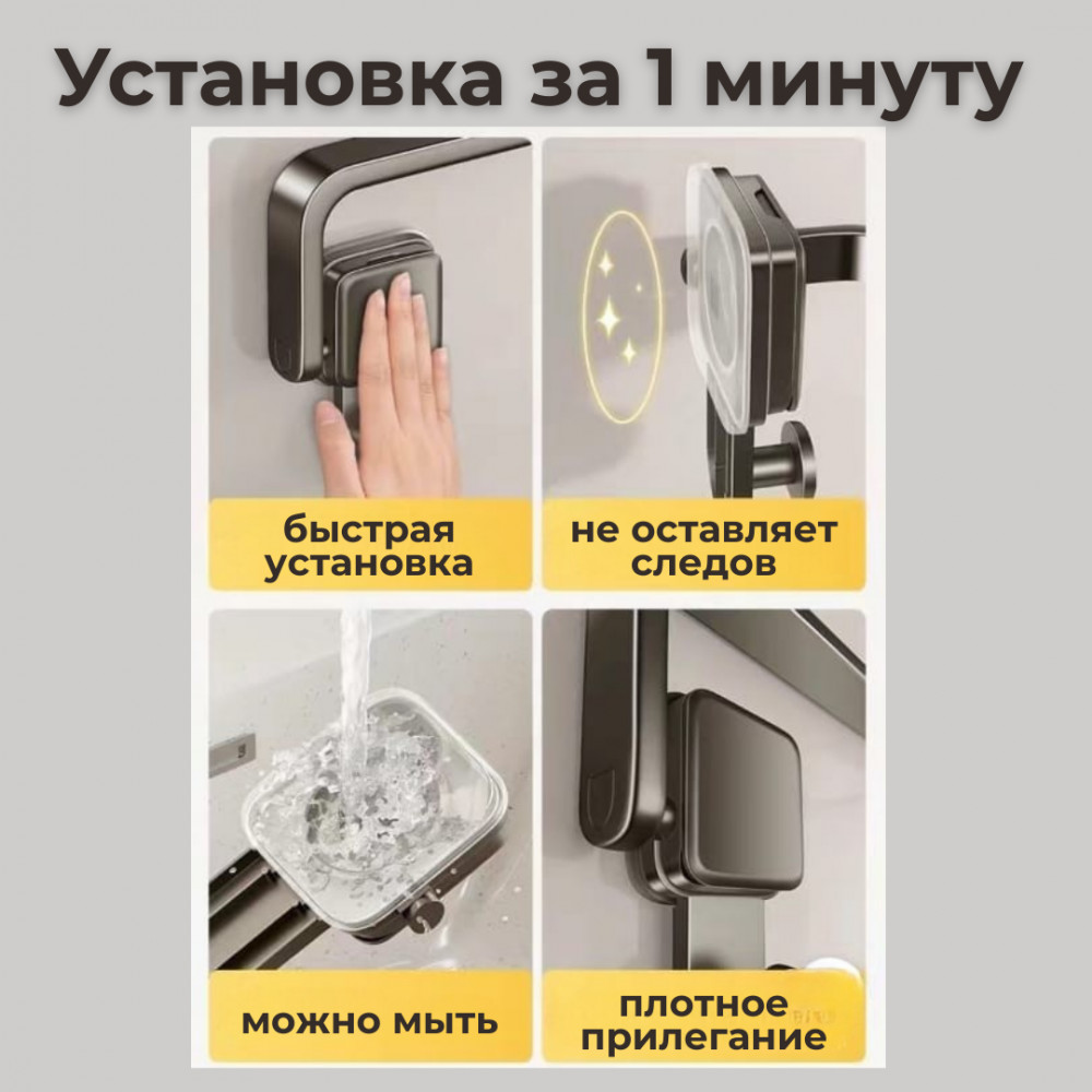 💳 Оплатить за товар можно при получении 🇰🇿 Есть бесплатная доставка по Казахстану от 1 дня 🎁 Копите бонусы с каждой покупки Удобная и вместительная складная полка-держатель на присосках — идеальное решение для ванной комнаты без сверления и повреждения стен. Крепится за секунды благодаря мощным вакуумным присоскам и выдерживает значительную нагрузку. Полка легко складывается, экономя пространство, а алюминиевый корпус устойчив к влаге, коррозии и перепадам температуры. Размеры: 40 × 23,5 × 20 см — достаточно для полотенец, банных принадлежностей и аксессуаров. |