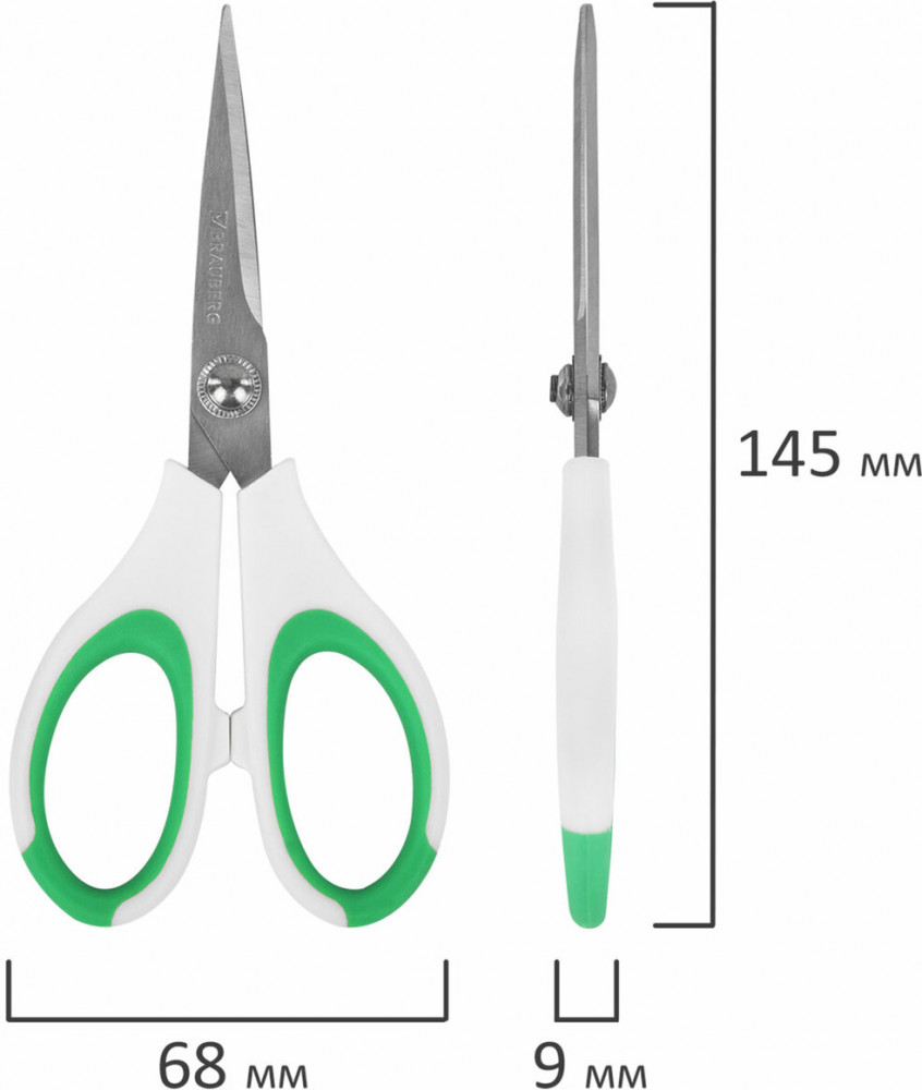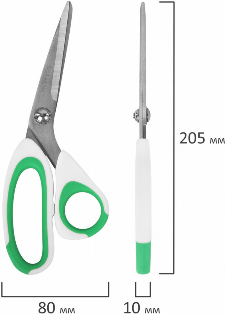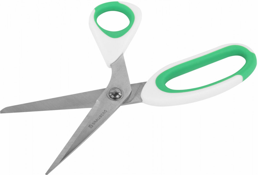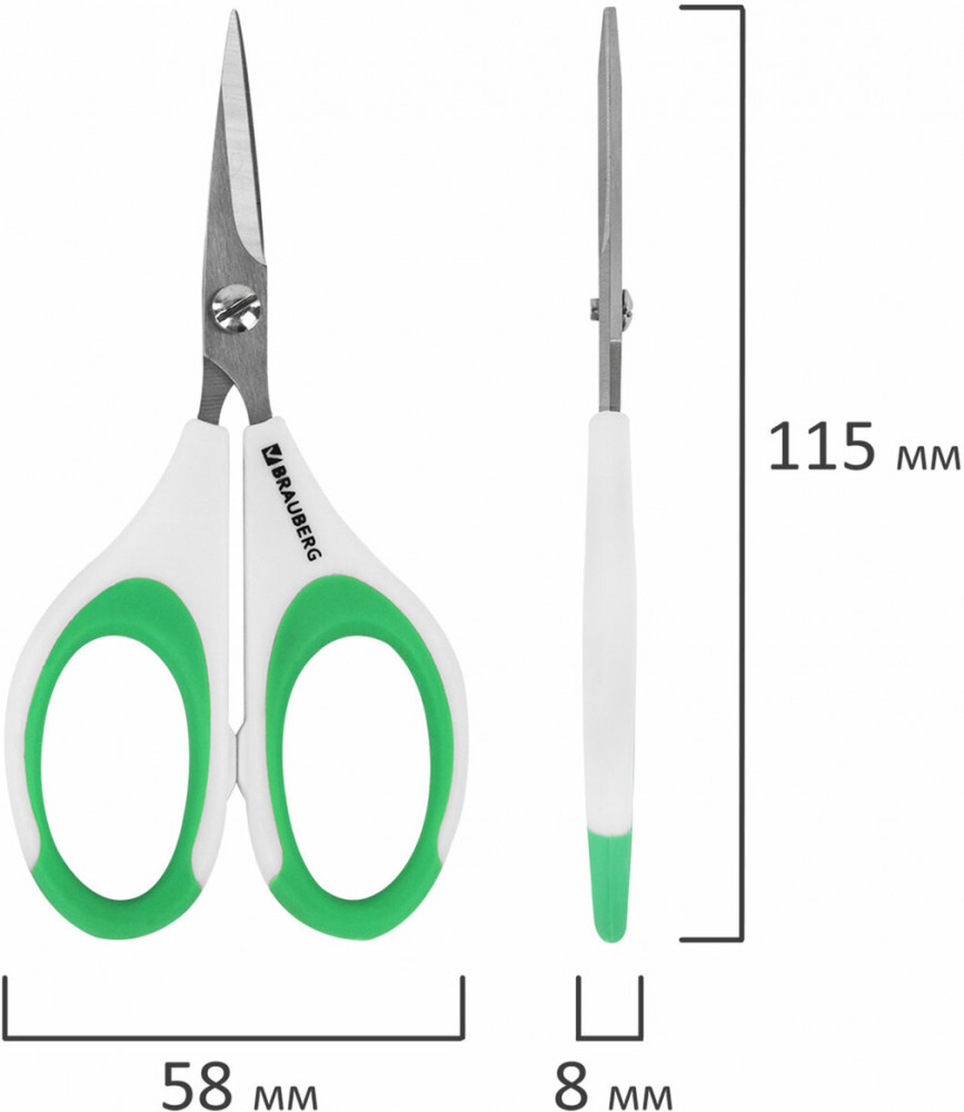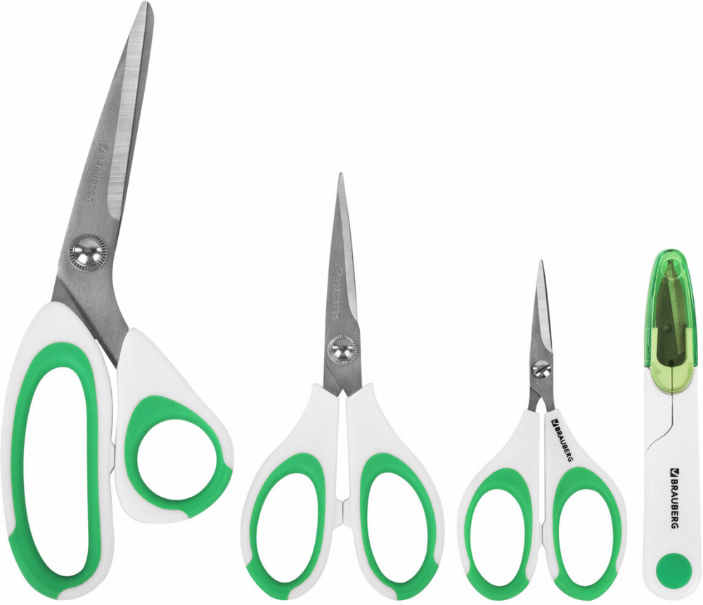 Комплект универсальных ножниц BRAUBERG. Эти ножницы идеально подходят для резки бумаги, картона и других материалов, что делает их незаменимыми как в офисе, так и дома.