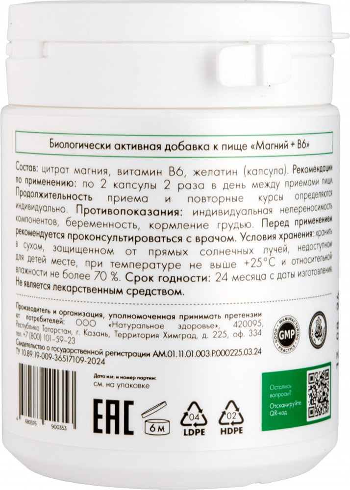 С магнием В6 от Natural Health вы можете быть уверены в том, что получаете высококачественный продукт, предназначенный для снятия стресса и тревоги. Витаминный комплекс с успокоительным эффектом является идеальным выбором для взрослых, которым нужна поддержка нервной системы. Рекомендуется принимать магний В6 перед сном, чтобы обеспечить спокойный и качественный сон. Кроме того, магний В6 также может быть полезен в качестве дополнения диеты для женщин и мужчин, особенно в периоды стресса или физической активности. Независимо от того, нужен ли вам магний В6 для успокоения или для поддержки стрессовых ситуаций, этот бад — отличный выбор для достижения оптимального здоровья.