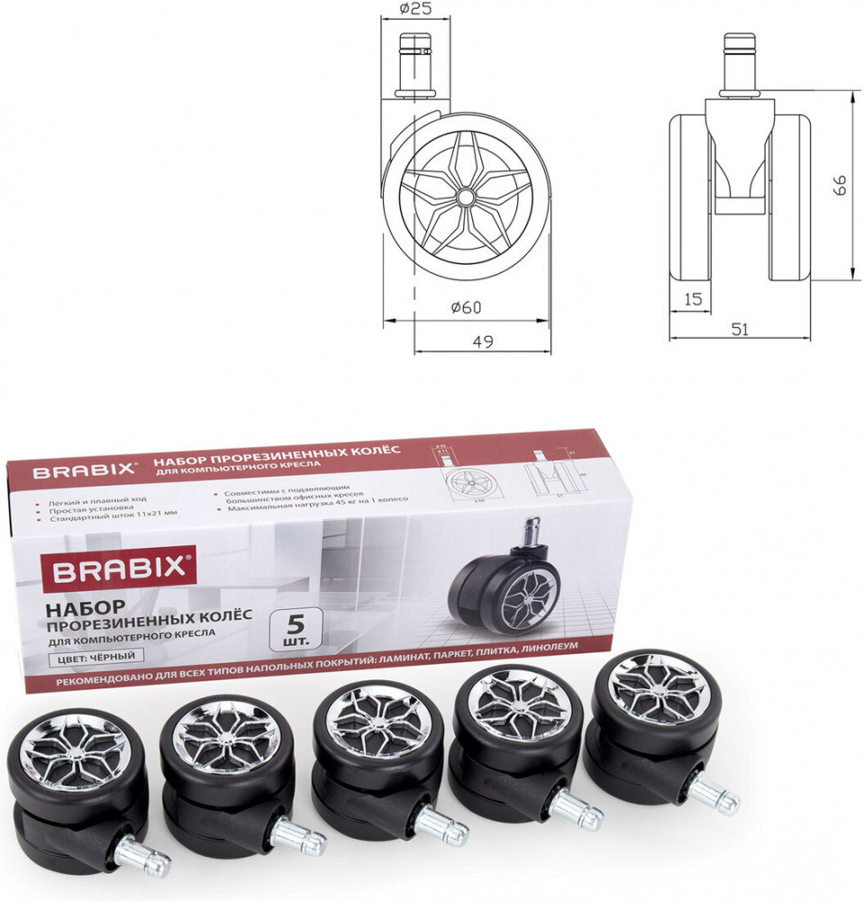 Brabix Колеса для кресла-20% +48
