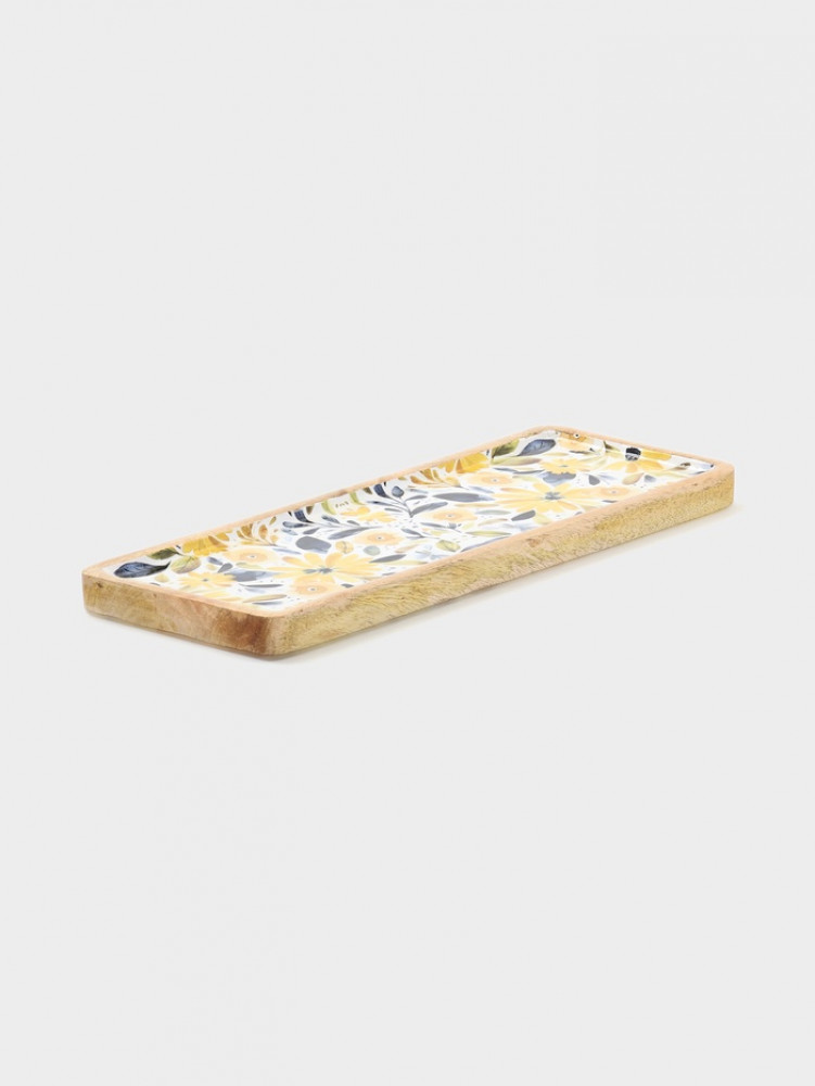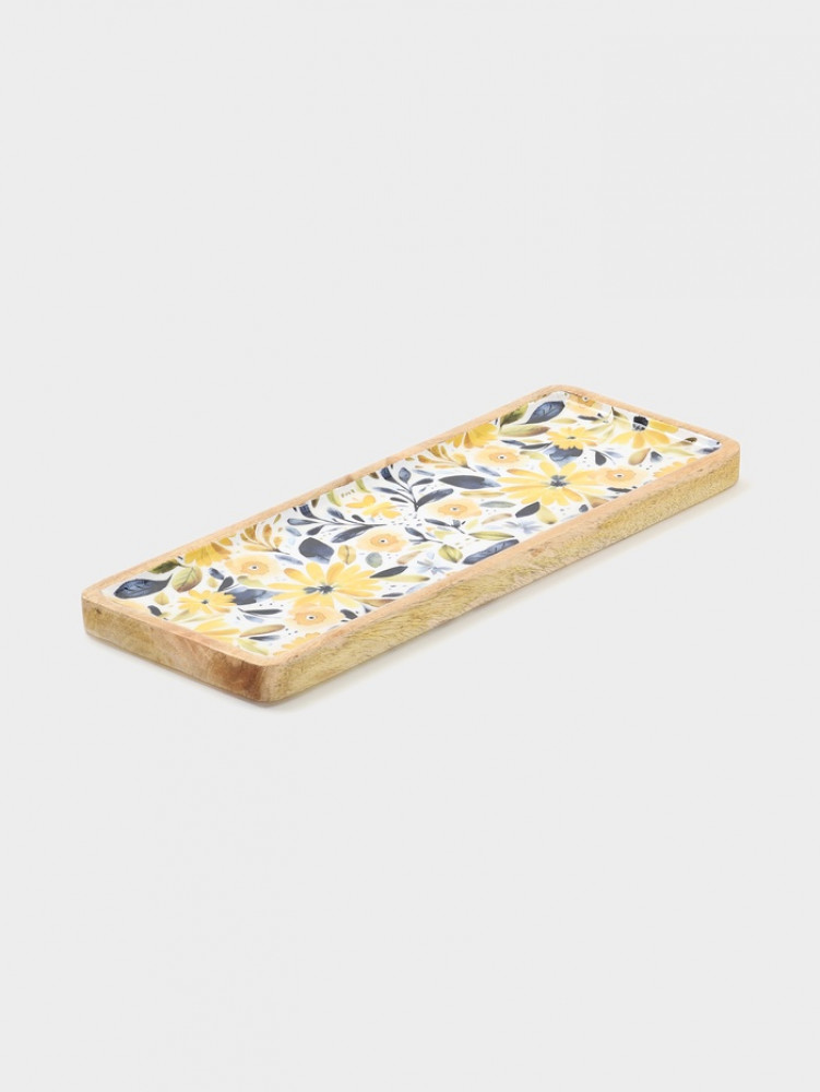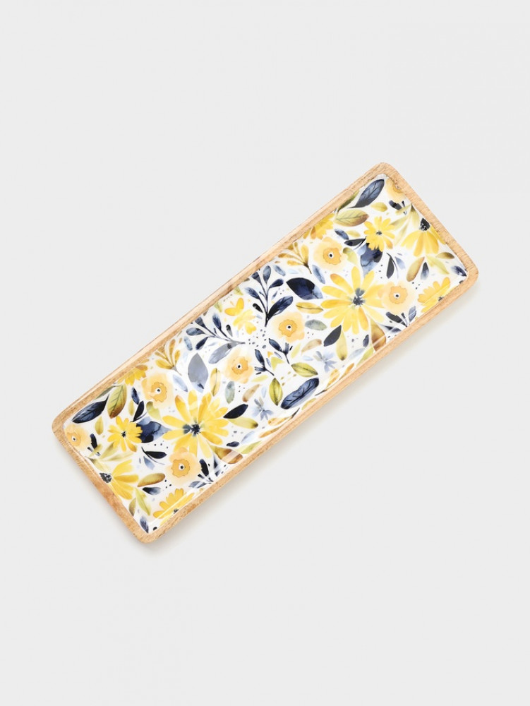 Блюдо прямоугольное «Желтые и синие цветы»