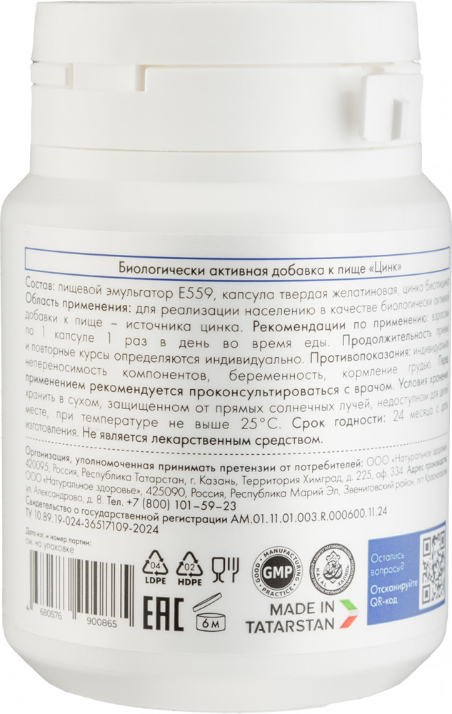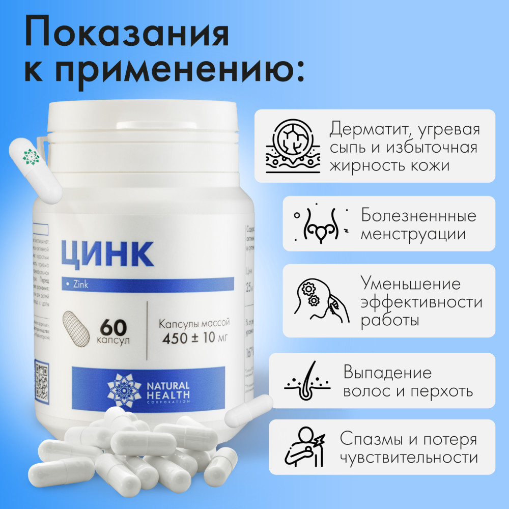 Natural Health Витаминный комплекс для женщин и мужчин «Цинк. Zinc»