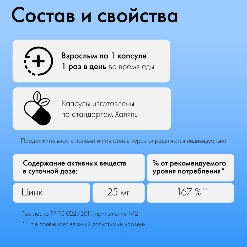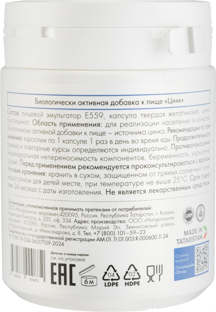 Natural Health Витаминный комплекс для женщин и мужчин «Цинк. Zinc»