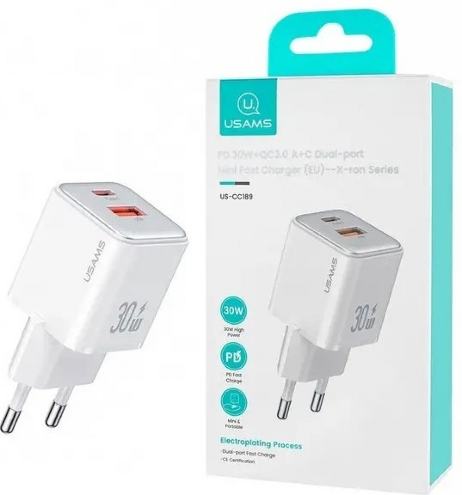 Usams СЗУ (US-CC189) 30W QC 3.0+PD USB+Type-C порты+46