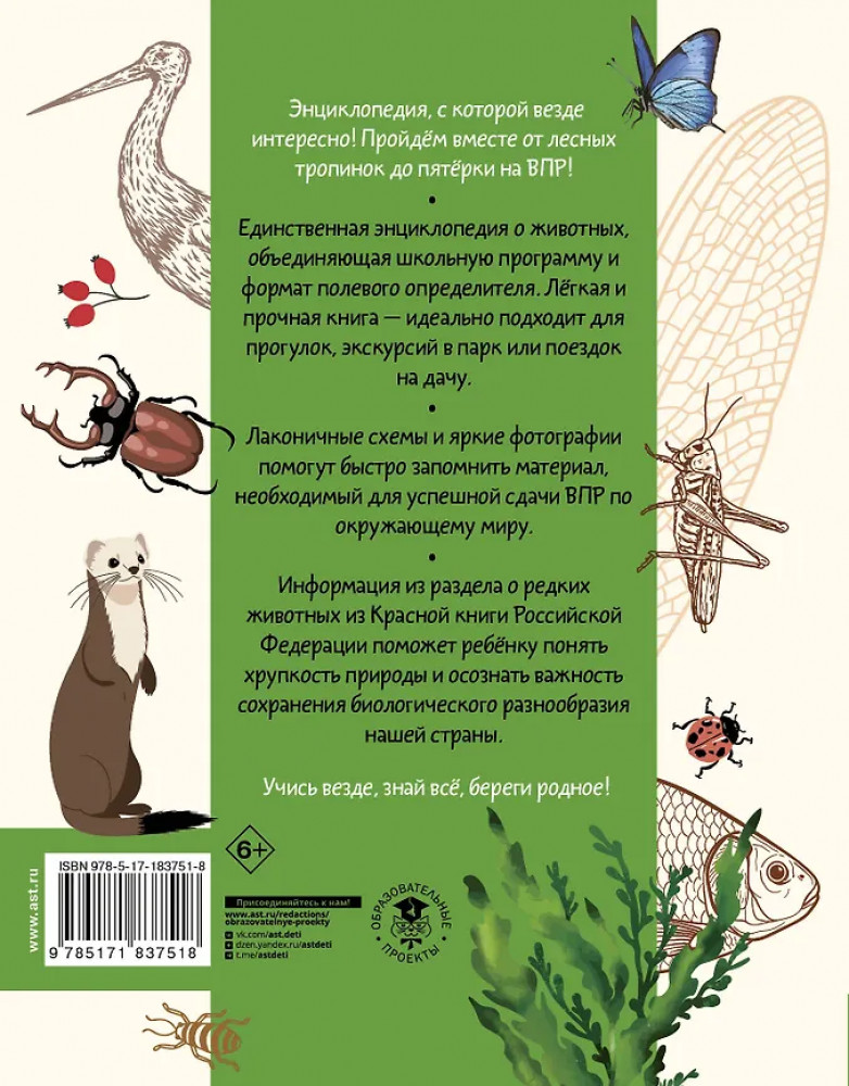💳 Оплатить за товар можно при получении 🇰🇿 Есть бесплатная доставка по Казахстану от 1 дня 🎁 Копите бонусы с каждой покупки Серия: Школьные энциклопедии Хотите, чтобы ваш ребёнок знал о животных больше? С нашей энциклопедией это просто! Она легко помещается в рюкзак и помогает находить ответы на вопросы окружающего мира прямо во время прогулок. Ребёнок не только отлично подготовится к ВПР со школьной энциклопедией, но и изучит повадки и среду обитания зверей России, узнает из раздела Красной книги о самых редких обитателях нашей страны, о тех, кто нуждается в защите. |