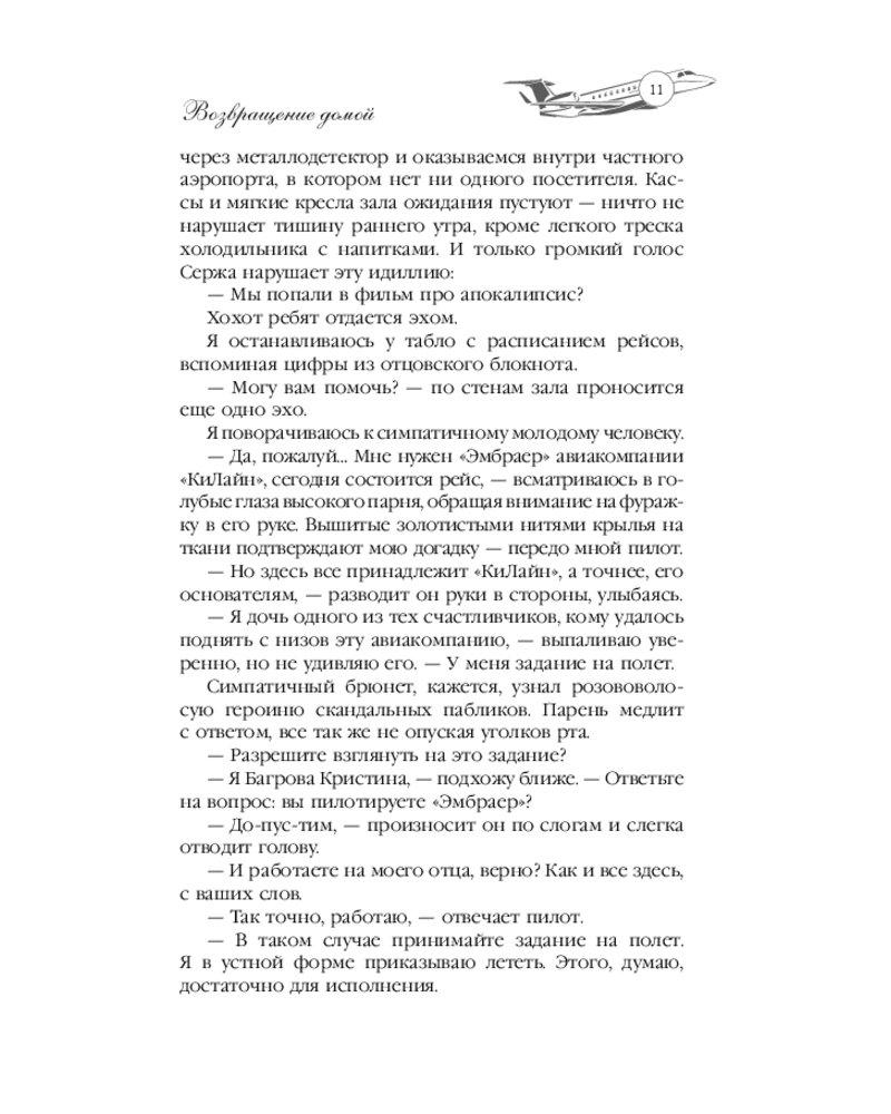 💳 Оплатить за товар можно при получении 🇰🇿 Есть бесплатная доставка по Казахстану от 1 дня 🎁 Копите бонусы с каждой покупки Серия: Любовь с первого взлёта «КиЛайн» — крупнейшая авиакомпания с самым богатым парком самолетов в стране. И жизнь легка, когда ты дочка ее основателя. Девушка не привыкла себе в чем-то отказывать и однажды, из-за обиды на родителей, угнала самолет. Теперь она обязана вернуть долг, став стюардессой. Ситуация не очень приятная, а пассажиры делают все только хуже. Особенно когда один из них оказывается ее коллегой-врачом, чье тело и душа усеяны шрамами прошлого. |