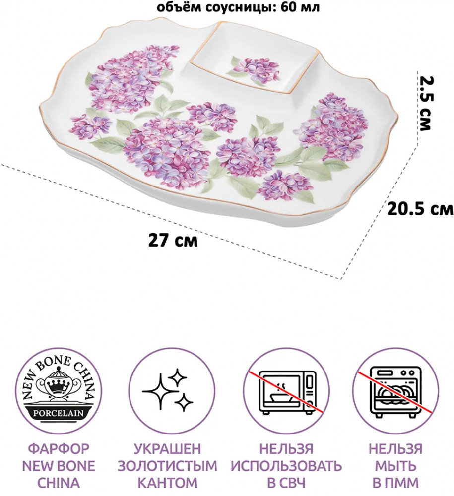 Elan Gallery Блюдо для шашлыка с соусницей «Сирень»