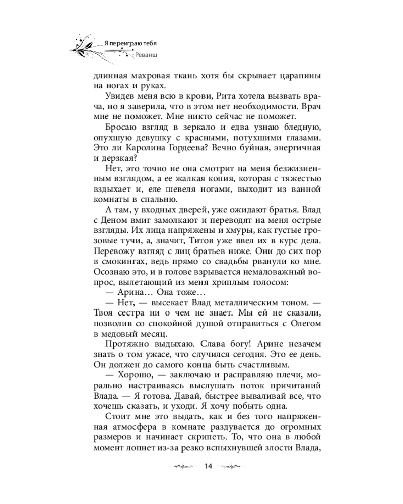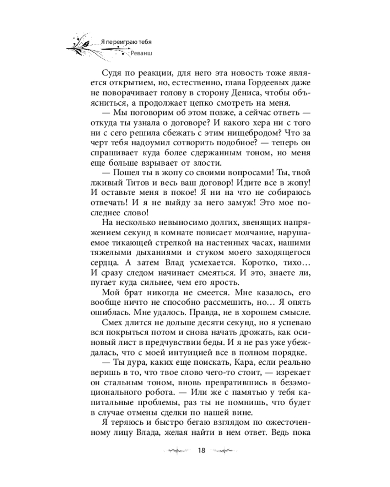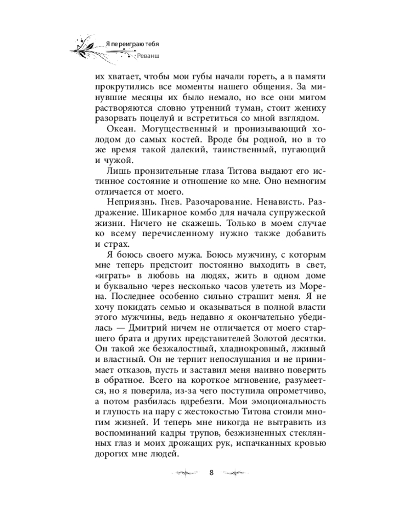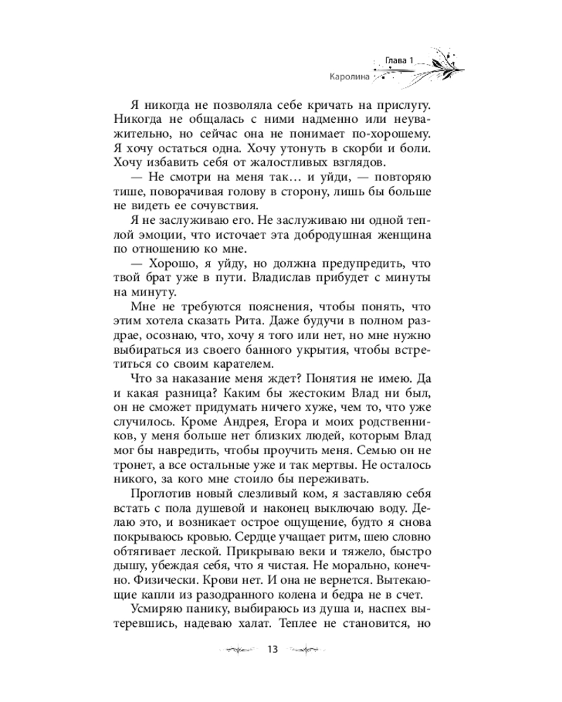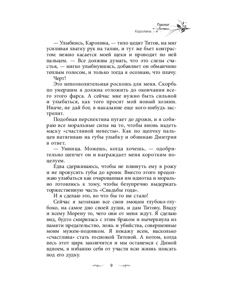 💳 Оплатить за товар можно при получении 🇰🇿 Есть бесплатная доставка по Казахстану от 1 дня 🎁 Копите бонусы с каждой покупки Серия: Опасные объятия Дмитрий Титов — образец искусного лжеца и безжалостного убийцы. Он заставил меня поверить, что в нашем лицемерном мире возможно найти нечто искреннее, а потом за миг разбил мою веру. Я ненавижу мерзавца, но должна выйти за него замуж, чтобы уберечь свою семью от краха. Сейчас, как никогда прежде, нужно сохранить наши земли, власть и союзников, чтобы суметь отыскать членов вражеского альянса и доказать их вину в череде недавних происшествий. Враги нацелены уничтожить моего брата, который намерен разрушить нынешнюю систему правления. И Титов может ему в этом помочь. Но станет ли? Неизвестно. И смогу ли я правильно сыграть свою партию в этой опасной игре, находясь во власти мужчины, который ежедневно разбивает мне сердце? |