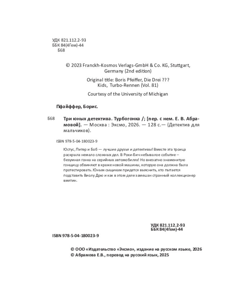 💳 Оплатить за товар можно при получении 🇰🇿 Есть бесплатная доставка по Казахстану от 1 дня 🎁 Копите бонусы с каждой покупки Серия: Детектив для мальчиков Юстус, Питер и Боб — лучшие друзья и детективы! Вместе эта троица раскрыла немало сложных дел. В Роки-Бич небывалое событие — безумная гонка на серийных автомобилях! Но внезапно знаменитую гонщицу обвиняют в краже новой машины, которую она должна была протестировать. Юным сыщикам придется выяснить, кто пытается подставить Виолу Дрю и как в этом деле замешан странный коллекционер вмятин. |