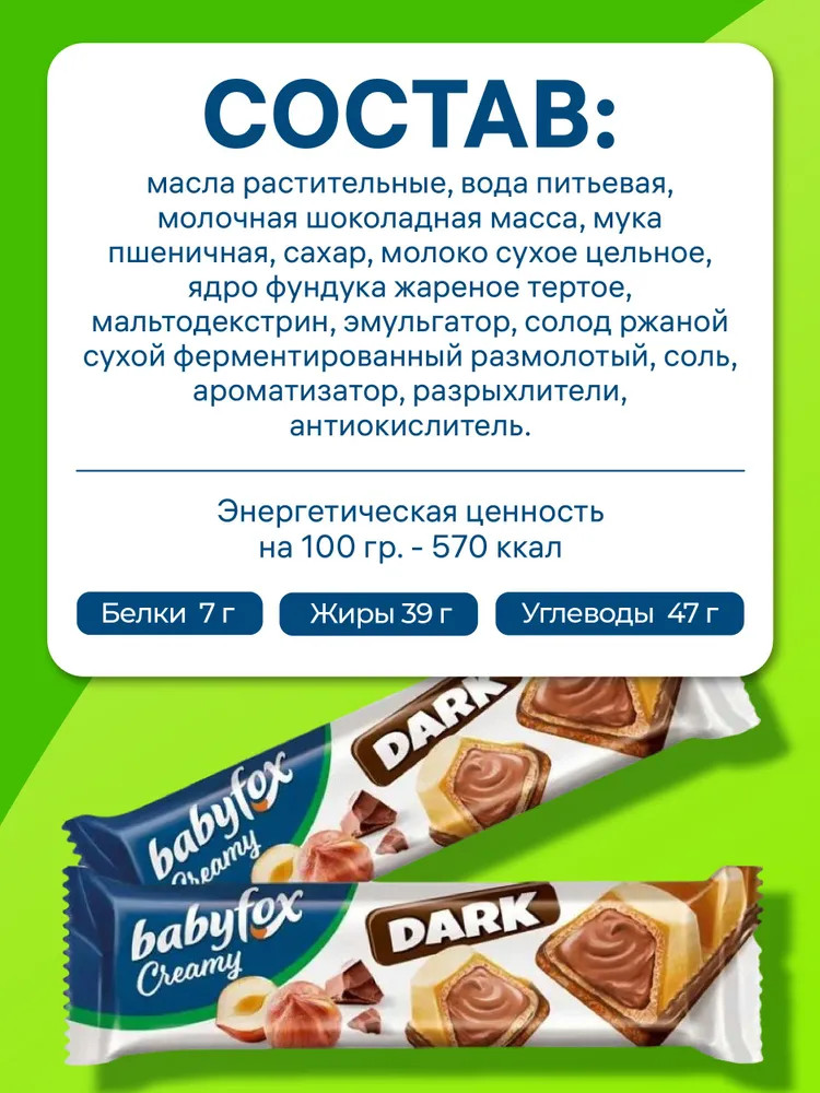 BabyFox Вафельный батончик с шоколадно-ореховой начинкой «Dark»