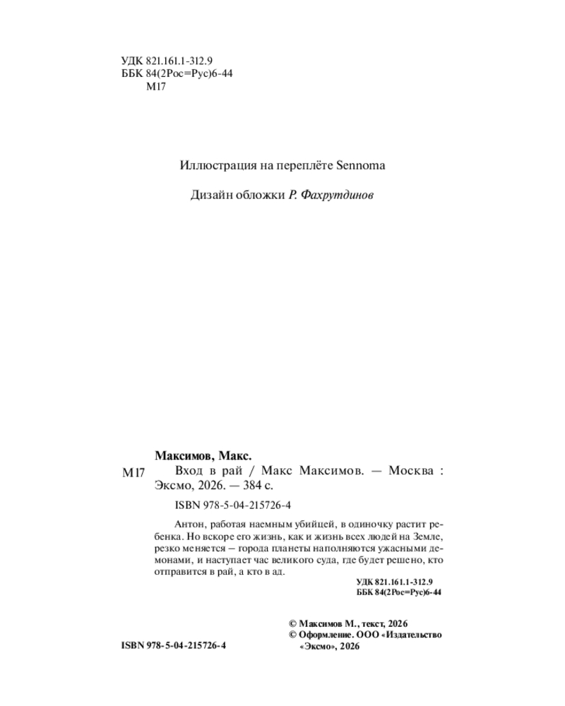 💳 Оплатить за товар можно при получении 🇰🇿 Есть бесплатная доставка по Казахстану от 1 дня 🎁 Копите бонусы с каждой покупки Серия: Макс Максимов. Фантастика от звезды YouTube (новое оформление) Антон, работая наемным убийцей, в одиночку растит ребенка. Но вскоре его жизнь, как и жизнь всех людей на Земле, резко меняется — города планеты наполняются ужасными демонами, и наступает час великого суда, где будет решено, кто отправится в рай, а кто в ад. |