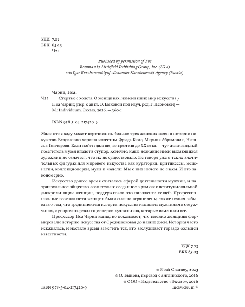 💳 Оплатить за товар можно при получении 🇰🇿 Есть бесплатная доставка по Казахстану от 1 дня 🎁 Копите бонусы с каждой покупки Серия: Individuum Мало кто с ходу может перечислить больше трех женских имен в истории искусства. Безусловно, хорошо известны Фрида Кало, Марина Абрамович, Наталья Гончарова. Если пойти дальше, во времена до ХХ века, — тут даже заядлый посетитель музея впадет в ступор. Конечно, наше незнание имен выдающихся художниц не означает, что их не существовало. Не говоря уже о таких значительных фигурах для мирового искусства, как кураторки, критикессы, меценатки, коллекционерки, музы и модели. Мы о них ничего не знаем. И это закономерно. |