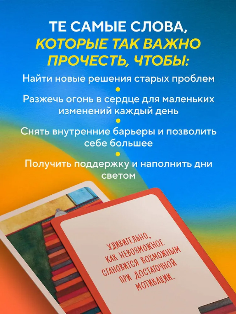 💳 Оплатить за товар можно при получении 🇰🇿 Есть бесплатная доставка по Казахстану от 1 дня 🎁 Копите бонусы с каждой покупки Серия: Кафе на краю земли. Вдохновляющие открытия Джона Стрелеки Перед вами — метафорические карты от Джона Стрелеки, автора «Кафе на краю земли». Каждое утро выбирайте новую карту, чтобы получить поддержку, найти мотивацию и взглянуть на ежедневные задачи под новым углом. |