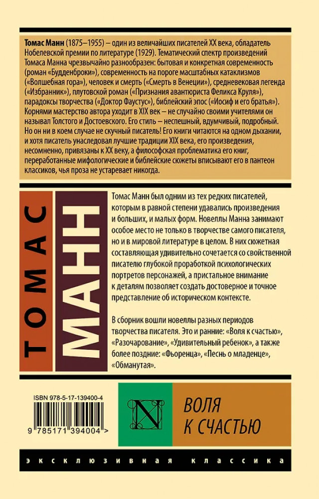 💳 Оплатить за товар можно при получении 🇰🇿 Есть бесплатная доставка по Казахстану от 1 дня 🎁 Копите бонусы с каждой покупки Серия: Эксклюзивная классика Томас Манн был одним из тех редких писателей, которым в равной степени удавались произведения и больших, и малых форм. Новеллы Манна занимают особое место не только в творчестве самого писателя, но и в мировой литературе в целом. В них сюжетная составляющая удивительно сочетается со свойственной писателю глубокой проработкой психологических портретов персонажей, а пристальное внимание к деталям позволяет создать достоверное и точное представление об историческом контексте. |