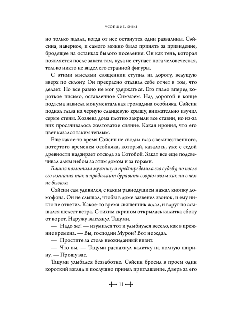 💳 Оплатить за товар можно при получении 🇰🇿 Есть бесплатная доставка по Казахстану от 1 дня 🎁 Копите бонусы с каждой покупки Серия: Ранобэ. Усопшие. Shiki Пришло время расплаты за всё, что творилось в Сотобе. Монстры хотят крови, а жители деревни — возмездия. Каждый в руках держит оружие и готов нанести удар... Сэйсин и Тосио оказываются на противоположных сторонах ожесточённой борьбы. Вокруг люди и неупокойные друг за другом теряют чувства, семейные узы, дружбу и уверенность в завтрашнем дне. Борьба, начавшаяся на рассвете, разгорается сильнее, а у святилища громоздятся горы трупов. В ревущей от гнева толпе уже не понять, кто перед тобой — демон или человек. Боль и страх разожгли судьбоносный огонь. Сможет ли кто-то остаться в живых на пепелище войны между жизнью и смертью? |