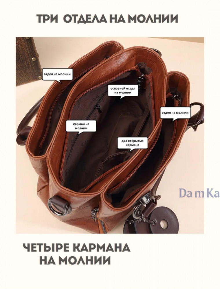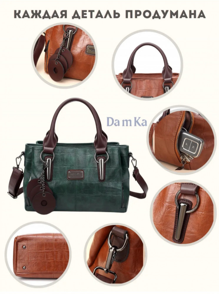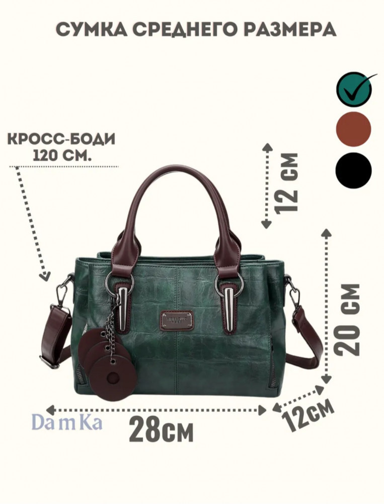 Сумка через плечо Da m Ka — идеальное сочетание практичности и элегантности. Изготовленная из качественной экокожи с зернистой фактурой, она станет незаменимым аксессуаром для современной женщины. Жесткая форма сумки сохраняет ее форму и защищает содержимое. Два отделения и множество карманов для документов, ключей, телефона и других мелочей. Сумка стоит на ножках, защищая ее от загрязнений. Это позволяет ей стоять вертикально.