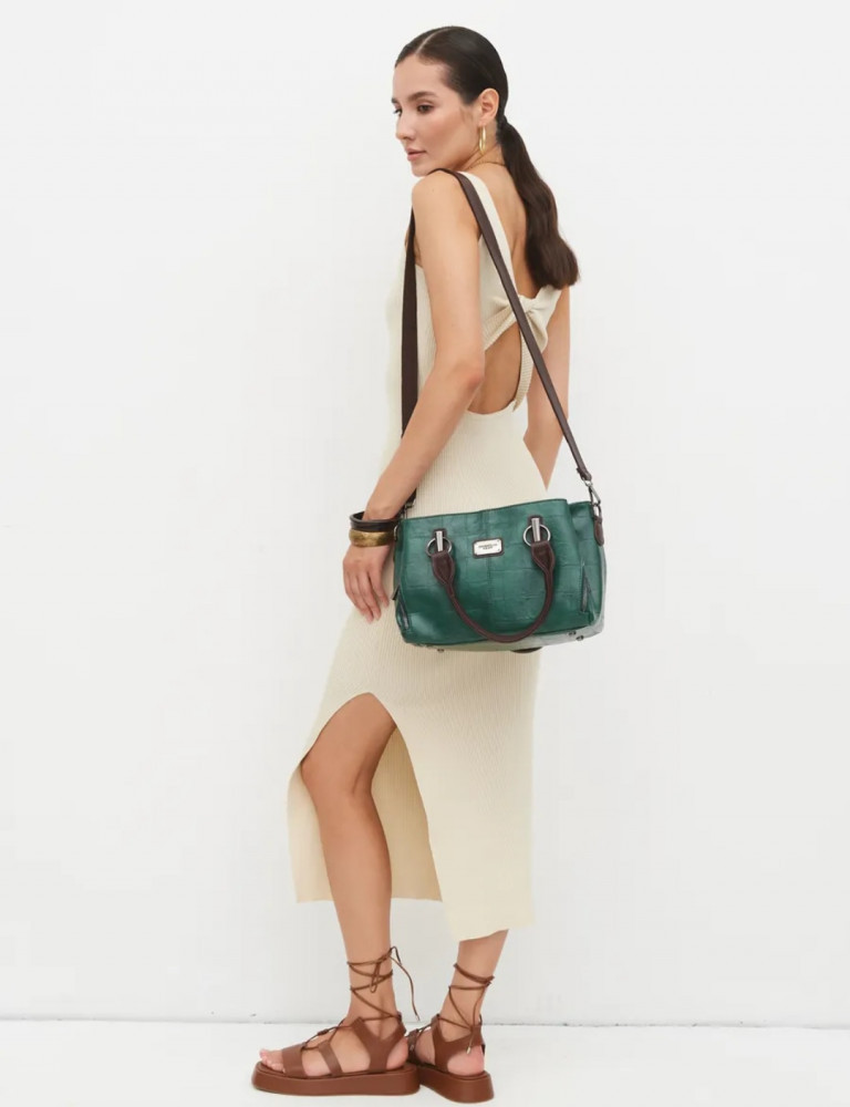 • цвет — трендовый зелёный, легко сочетается с разными образами;