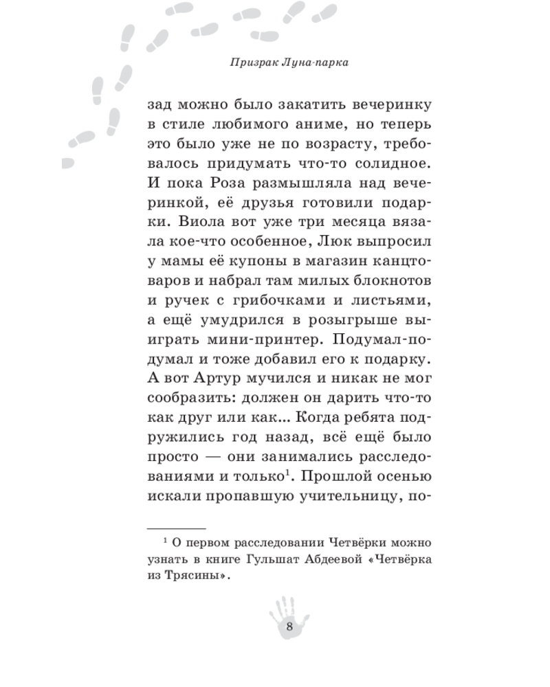 💳 Оплатить за товар можно при получении 🇰🇿 Есть бесплатная доставка по Казахстану от 1 дня 🎁 Копите бонусы с каждой покупки Серия: Четвёрка из Трясины. Детективы для подростков Продолжение популярной серии про четверых друзей! Стоило всего один раз четырнадцатилетним Артуру, Розе, Виоле и Люку поступить как настоящие детективы и найти преступников, угрожавших их родному городку, как спокойная жизнь друзей закончилась. Их словно преследуют загадки, требующие разрешения. |