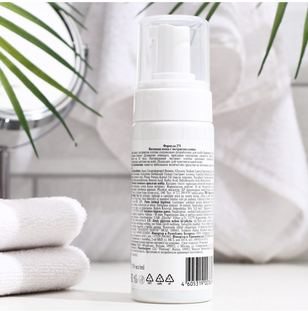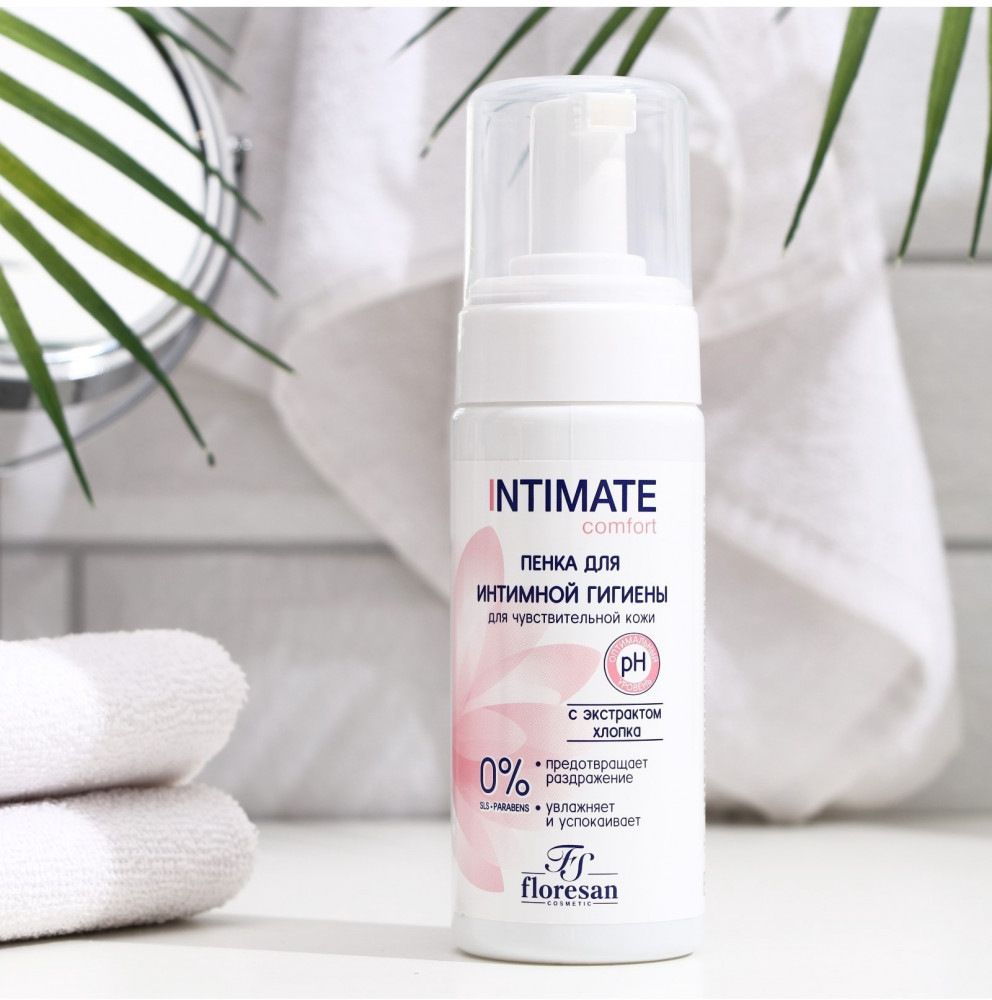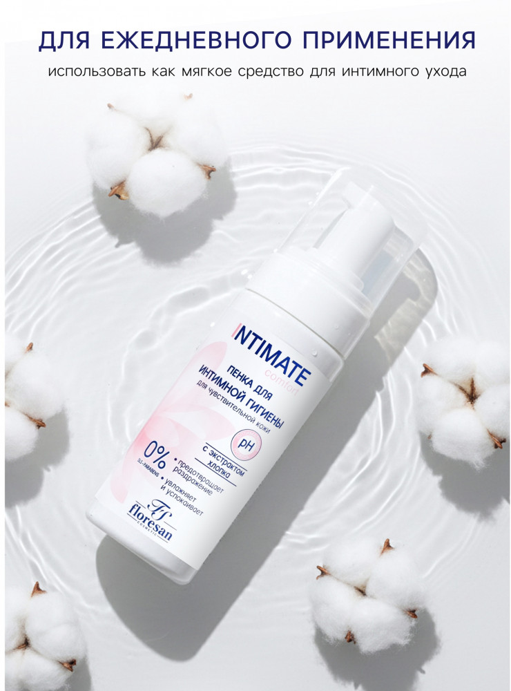 Floresan Пенка для интимной гигиены для чувствительной кожи с экстрактом хлопка