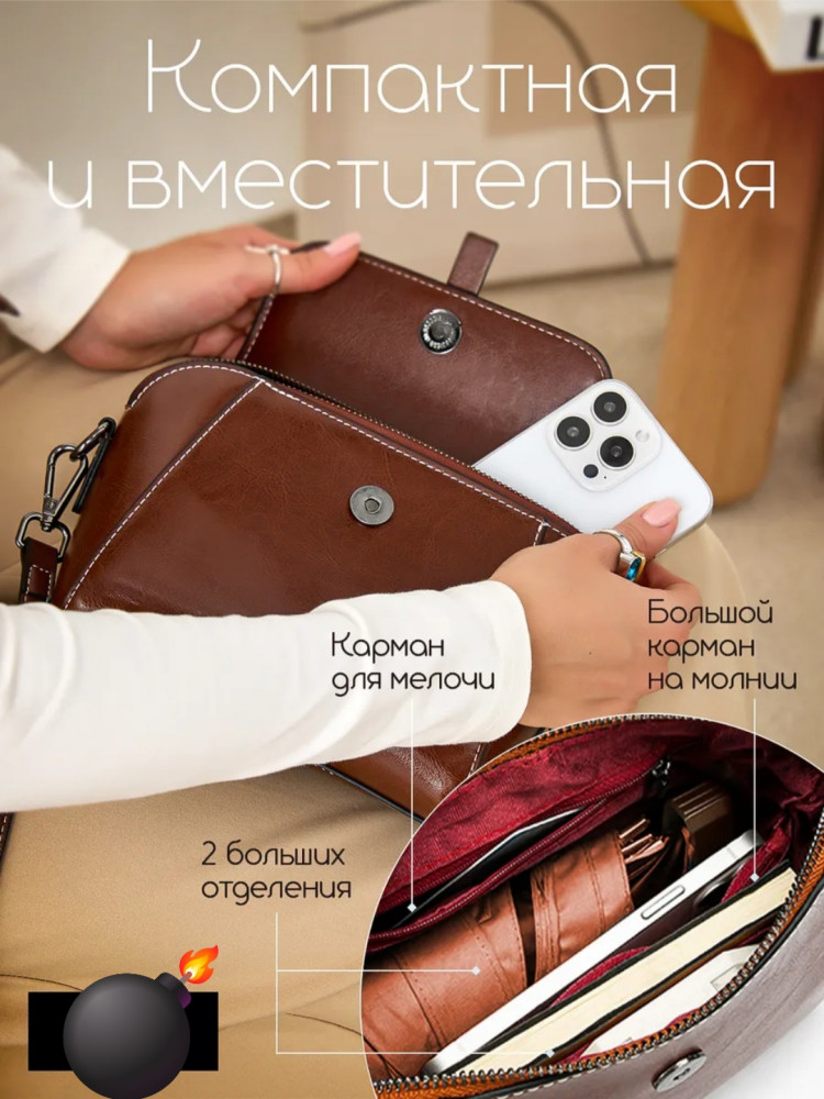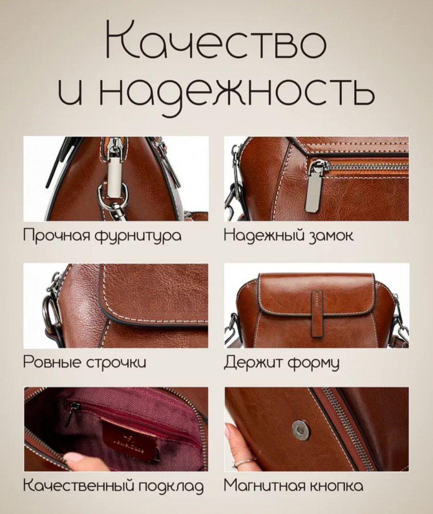 • универсальный дизайн — сумка гармонично дополняет как повседневные, так и вечерние образы, классический дизайн и нейтральные оттенки (коричневый, шоколадный) легко сочетаются с любой одеждой;
