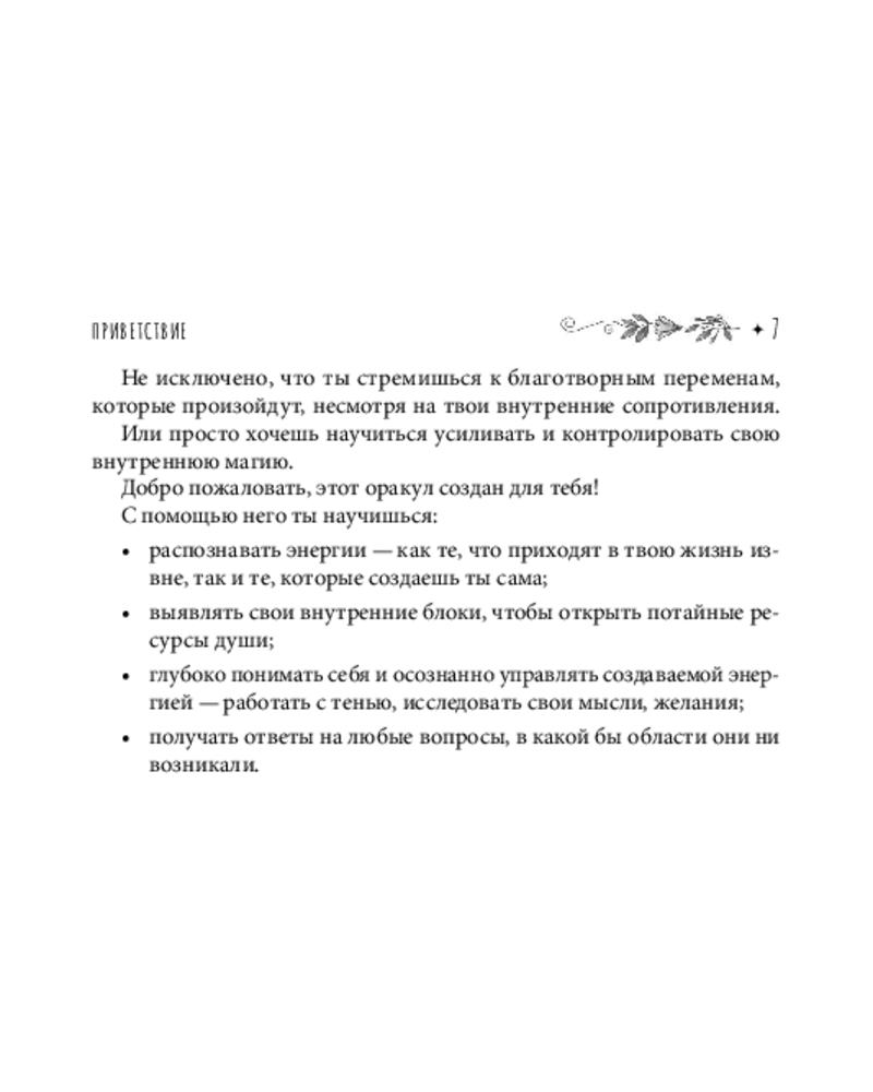 💳 Оплатить за товар можно при получении 🇰🇿 Есть бесплатная доставка по Казахстану от 1 дня 🎁 Копите бонусы с каждой покупки Серия: Эзотерические метафорические карты (коробка с картами + руководство) Каждая мысль — это энергия, которая формирует вашу жизнь. Позвольте себе стать осознанным Творцом своей реальности! «Творец Реальности» — это оракул светлой магии для тех, кто хочет найти новые источники силы, научиться осознанно управлять судьбой и воплотить мечты в реальность. С помощью 55 пробуждающих, вдохновляющих карт и великолепно оформленного руководства с подробными толкованиями, психологическими практиками и упражнениями вы научитесь перенастраивать мысли в поток творческой энергии, резонирующей с тонкими энергиями Вселенной. Этот оракул приглашает воплотить ваши мечты в реальность и наполнить каждый день магией света и осознанности. |
