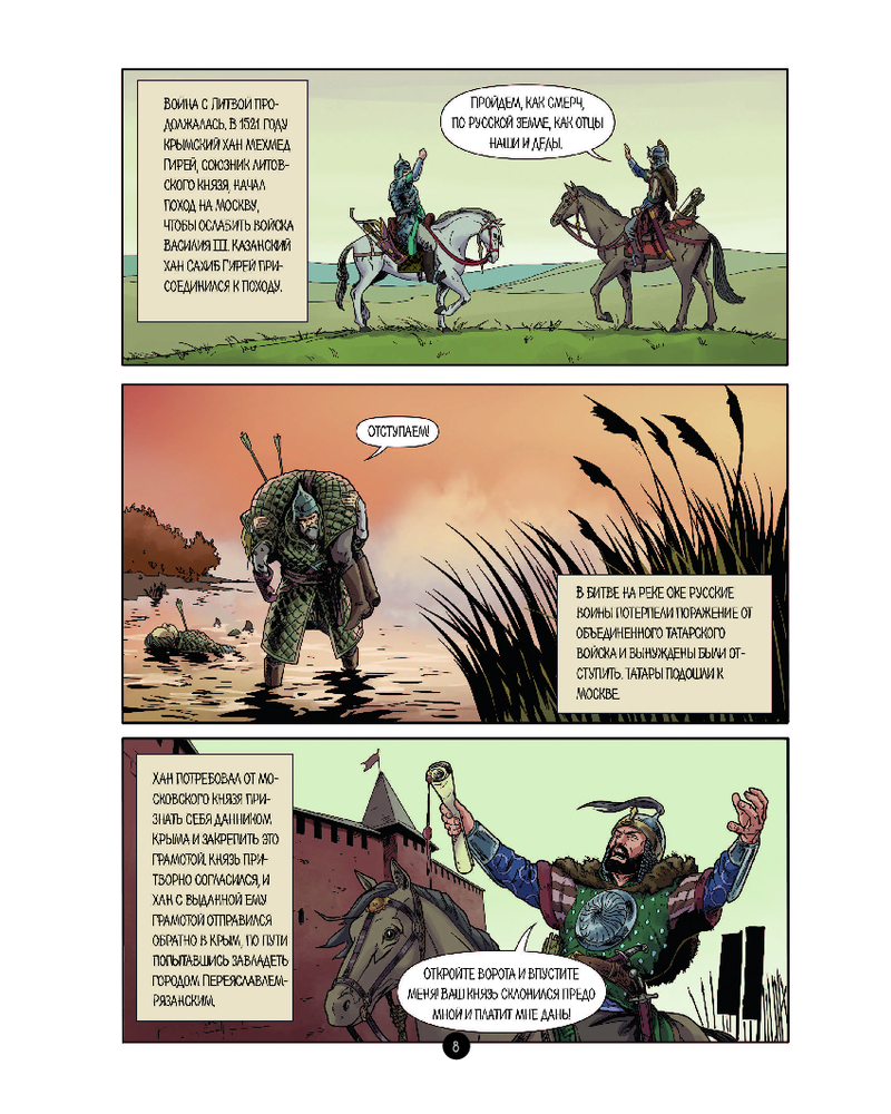 💳 Оплатить за товар можно при получении 🇰🇿 Есть бесплатная доставка по Казахстану от 1 дня 🎁 Копите бонусы с каждой покупки Серия: История государства российского в комиксах Каким был Иван Грозный в детстве? Как (не надо) притворяться царским сыном? Что мы отмечаем 4 ноября? История России таит в себе не меньше загадок, чем способен вместить любой выдуманный сюжет. При переводе на язык комикса известные факты становятся крутыми сюжетными поворотами, а ключевые фигуры — яркими образами, созданными с уважением к прошлому и любовью к исторической науке. |