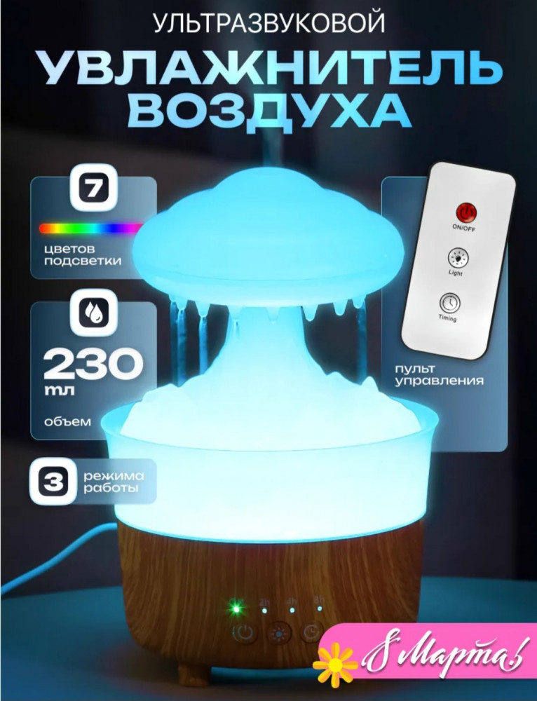 Увлажнитель для дома — это незаменимое устройство, которое создает комфортный воздух в помещении. Он не только увлажняет воздух, делая его более приятным для дыхания, но также способствует очищению воздуха от пыли и микрочастиц. Благодаря мини увлажнителю, вы сможете наслаждаться свежим и чистым воздухом как дома, так и в офисе. Этот ультразвуковой увлажнитель воздуха со встроенной подсветкой является стильным и практичным подарком для всех членов семьи на новый год, день рождения или новоселье.