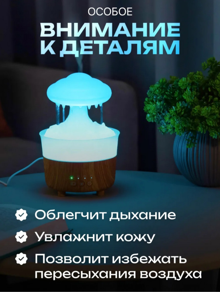 Аромадиффузор: Позволяет добавлять любимый аромат для создания атмосферы релаксации и уюта.