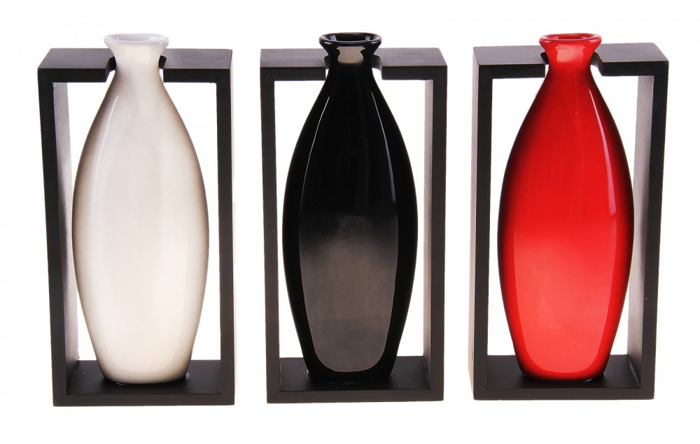 Вазы сами вполне интерьерные. Небольшие. Из деревянного корпуса не вынимаются, но последняя ваза пришла отклеенная от корпуса.