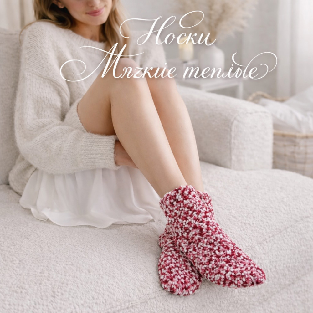 Носки из буклированной (помпонной) пряжи — мягкость и уют каждый день. Эти невероятно мягкие носки выполнены из уютной буклированной (помпонной) пряжи, которая создаёт объёмную, воздушную текстуру и дарит ощущение нежного тепла с первого прикосновения.