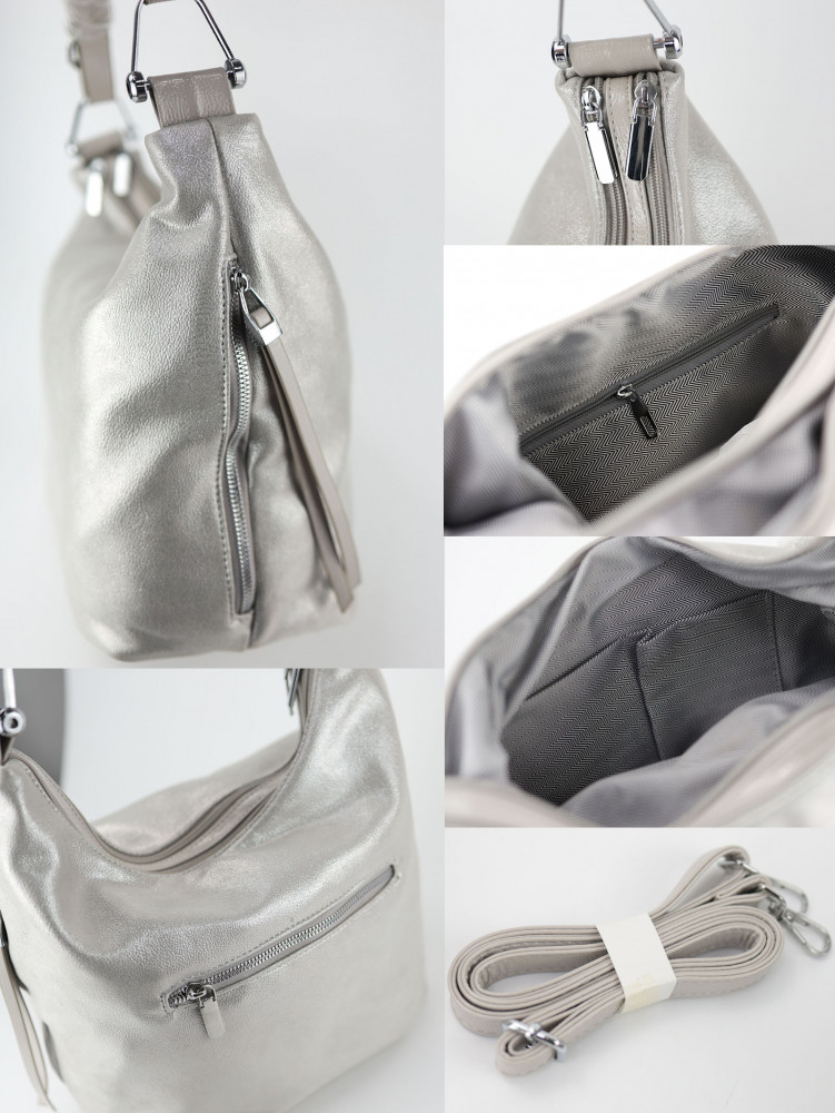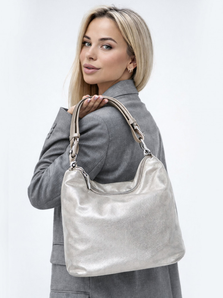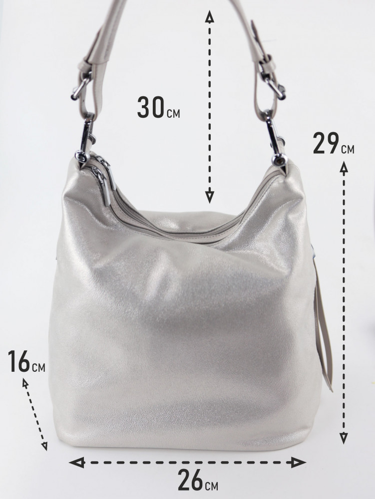 Женская сумка-хобо серебристая — мягкая вместительная сумка на плечо из экокожи с длинным ремнем. Стильная серебристая сумка-хобо — идеальный выбор для тех, кто ценит комфорт, мягкую форму и современный минимализм. Универсальная модель подходит для повседневной носки, офиса, прогулок и вечерних образов.