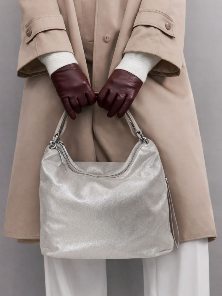 Серебристый оттенок делает модель акцентной, но при этом универсальной — сочетается с бежевыми, серыми, черными и базовыми образами.