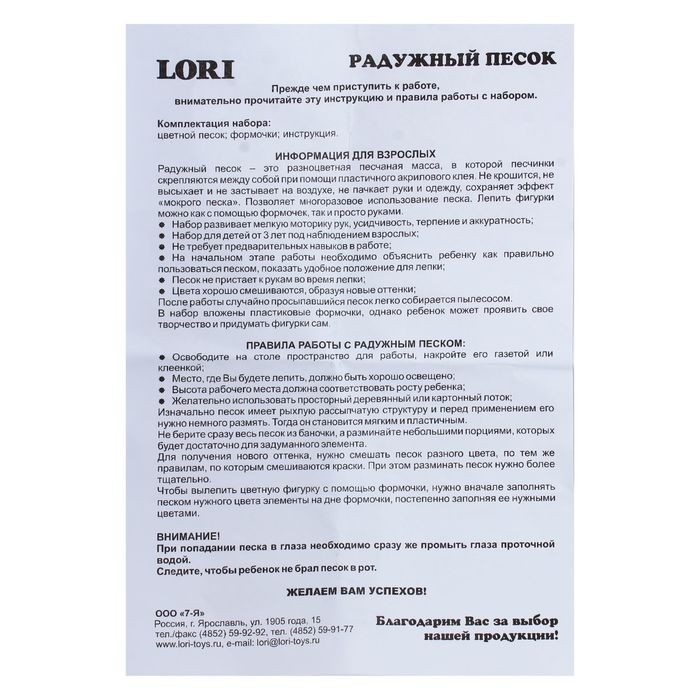 Lori Набор «Радужный песок», 6 цветовВ данный момент этот товар отсутствует в продаже. Возможно, у нас найдется аналогичный или похожий товар здесь. Серия: Радужный песок Чуть вдохновения, капля фантазии и разнообразие товаров для творчества из этого раздела позволят воплотить в жизнь самые смелые креативные идеи. набор «Радужный песок», 6 цветов отлично подойдет для гармоничного развития творческих способностей вашего малыша и организации увлекательного совместного досуга. Творите, экспериментируйте и украшайте свой быт оригинальными вещицами, сделанными своими руками. |