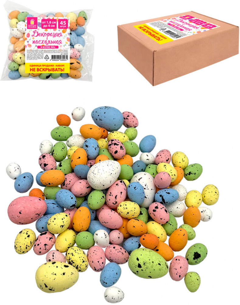 💳 Оплатить за товар можно при получении 🇰🇿 Есть бесплатная доставка по Казахстану от 1 дня 🎁 Копите бонусы с каждой покупки Украсьте свой праздник тёплыми символами весны и возрождения с очаровательной декорацией «Яйца» Золотая сказка. Набор из 45 пенопластовых яиц диаметром от 1,8 до 4 см станет вашим незаменимым помощником в создании уютного праздничного настроения. Яркие весенние цвета яичек придают декору живость и гармонию. Идеально подходят для украшения пасхального стола, детских уголков, венков, куличей или в качестве милого акцента в подарочной корзинке. Набор упакован в прозрачный пакет с клеевым краем и дополнительный гофрокороб. |