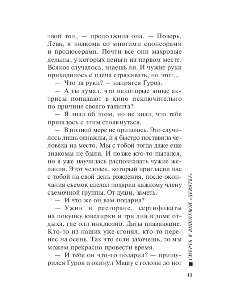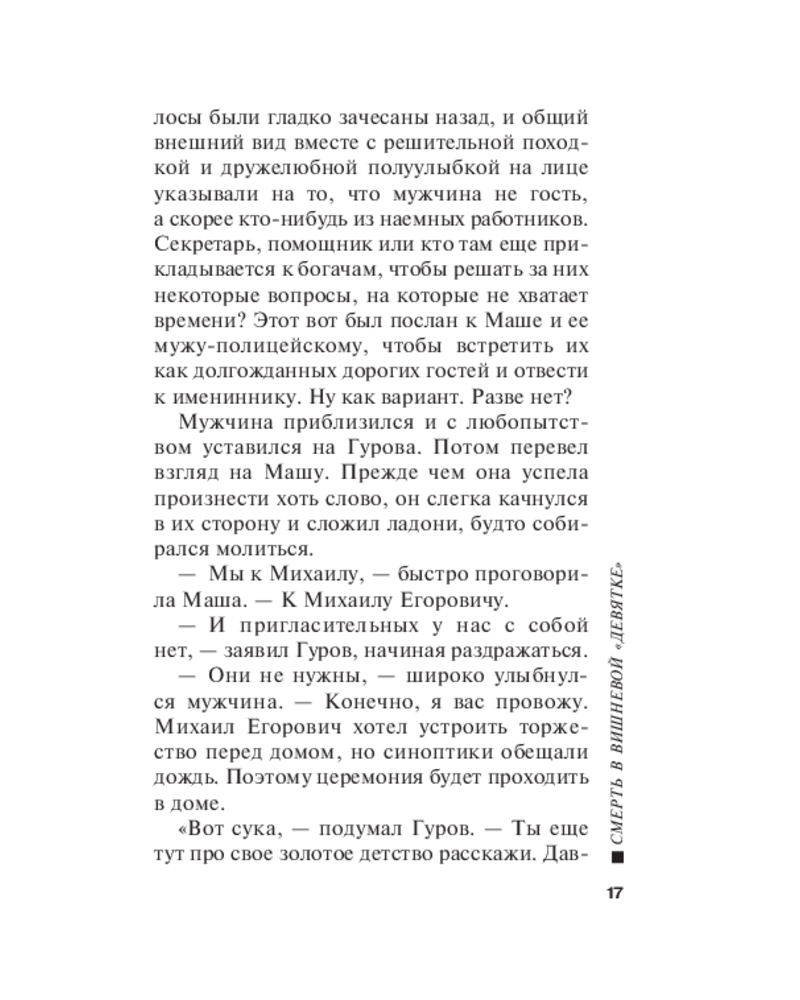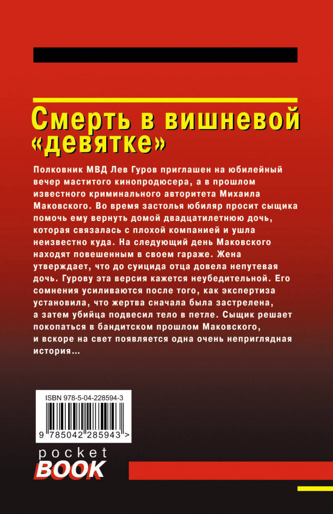 💳 Оплатить за товар можно при получении 🇰🇿 Есть бесплатная доставка по Казахстану от 1 дня 🎁 Копите бонусы с каждой покупки Серия: Русский бестселлер (обложка) Полковник МВД Лев Гуров приглашен на юбилейный вечер маститого кинопродюсера, а в прошлом известного криминального авторитета Михаила Маковского. Во время застолья юбиляр просит сыщика помочь ему вернуть домой двадцатилетнюю дочь, которая связалась с плохой компанией и ушла неизвестно куда. На следующий день Маковского находят повешенным в своем гараже. Жена утверждает, что до суицида отца довела непутевая дочь. Гурову эта версия кажется неубедительной. Его сомнения усиливаются после того, как экспертиза установила, что жертва сначала была застрелена, а затем убийца подвесил тело в петле. Сыщик решает покопаться в бандитском прошлом Маковского, и вскоре на свет появляется одна очень неприглядная история... |