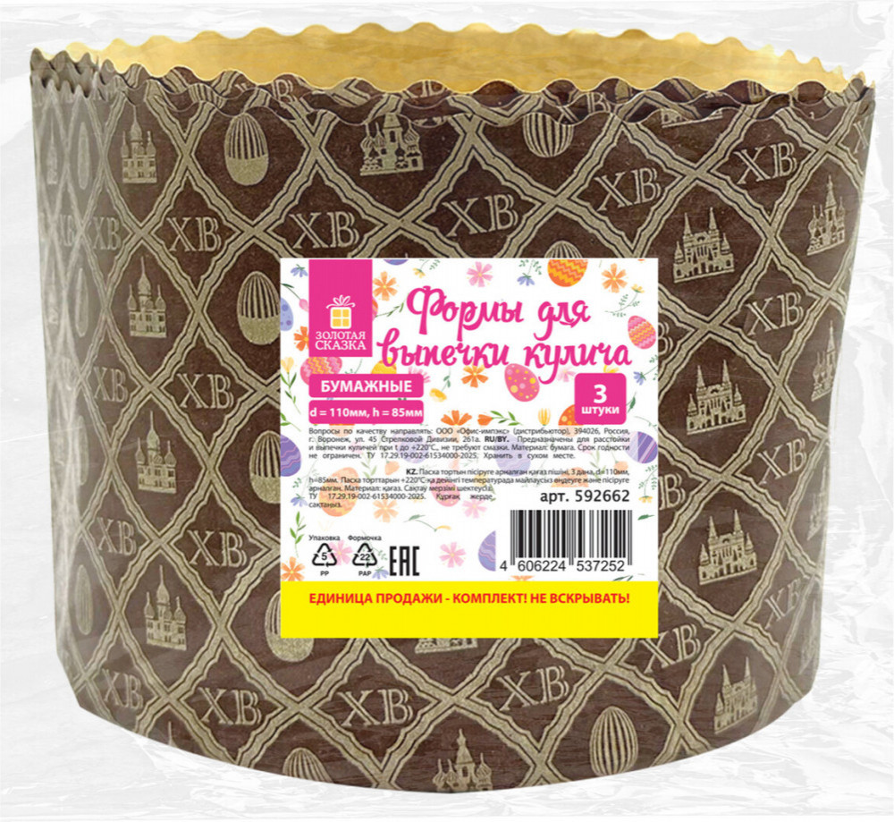 Золотая сказка Набор форм бумажных для выпечки пасхального кулича-20% +7
