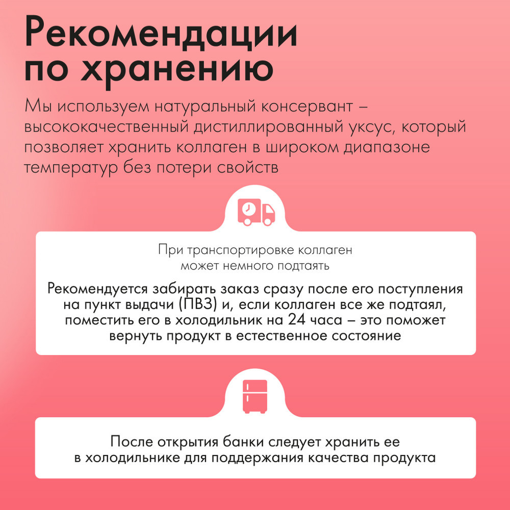 Очищенная вода, основа желирующая из коллагенсодержащего сырья говядины, аскорбиновая кислота, гиалуроновая кислота, консерванты: высококачественный дистиллированный уксус, сорбат калия, пищевой ароматизатор. Содержание активных веществ в суточной дозе: Витамин C (аскорбиновая кислота) 180 мг, гиалуроновая кислота 50 мг, коллаген из сырья говядины 875 мг.