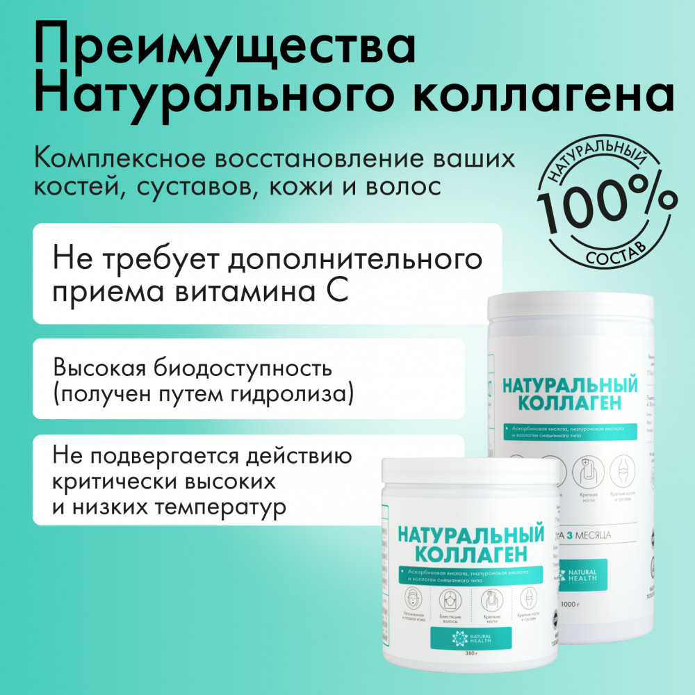 Коллаген для суставов, волос и кожи, желеобразный, живой коллаген 1 2 3 типа, комплекс 19 аминокислот, 380 грамм, Natural Health - это уникальный продукт, который защитит ваше здоровье и поможет достичь желаемого результата. Коллаген порошок имеет формулу 1, которая обеспечивает его высокую эффективность и быстрое воздействие на суставы, волосы и кожу. Живой коллаген, содержащийся в нем, позволяет работать в синергии с вашим организмом, в результате чего происходит нормализация работы суставов и улучшение состояния кожи и волос. Коллаген пищевой, содержащийся в этом продукте, является источником полезных веществ, таких как калий, кальций, магний, натрий, железо, марганец, медь, селен, цинк, а также различные жирные кислоты, витамин С и аминокислоты. Комбинация коллаген говяжий обеспечивает комплексное питание организма и помогает укрепить иммунную систему. Коллаген капсулы желе также подходит для людей, придерживающихся халяльного образа жизни. Специально разработанная формула, которая учитывает эти требования, делает его пригодным для употребления всеми желающими. Витамины для женщин, для кожи, входящий в состав этой комплексной пищевой добавки, поможет вам сохранить молодость и красоту кожи. Он содержит аминокислоты, необходимые для ее здоровья, а также комплекс витаминов, который поддерживает оптимальное состояние кожи. Colagen для связок и суставов является неотъемлемой частью спортивного питания и поможет вам достичь ваших спортивных целей. Коллаген морской разработан с использованием передовых технологий и содержит биодоступные формы коллагена и аминокислот, которые улучшают связки и суставы, а также снижают риск возникновения травм. Коллаген со вкусом манго также можно использовать в рамках программы похудения. Его уникальная формула поможет вам снизить аппетит и ускорить обмен веществ. Колаген порошок с витамином с и гиалуроновой кислотой является отличным дополнением к вашей диете и поможет вам достичь желаемого результата. Витамины для женщин, мужчин и детей, содержащиеся в этом препарате, обеспечат ваш организм всем необходимым для правильного функционирования. Кроме того, этот продукт содержит аминокислоты, которые являются основными строительными блоками организма и необходимы для его нормального функционирования. Разнообразие полезных веществ, которые присутствуют в этом спортивном комплексе, делает его идеальным выбором для активных людей, которые заботятся о своем здоровье и хотят достичь наилучших результатов. Он является незаменимым спутником во время тренировок и поможет вам достичь ваших целей в спорте и отдыхе.С этим бадом ваша дорога к успеху и желаемому результату будет намного легче. Он обеспечит ваш организм всеми необходимыми веществами и поможет достичь прекрасной формы.
