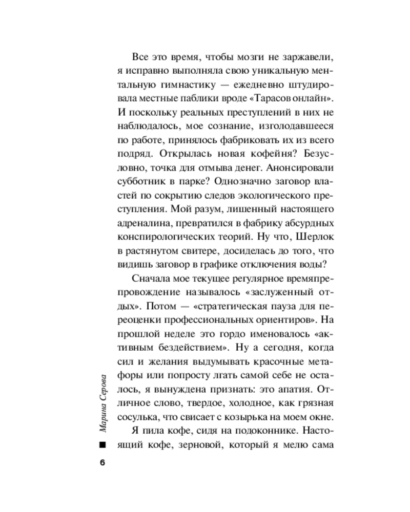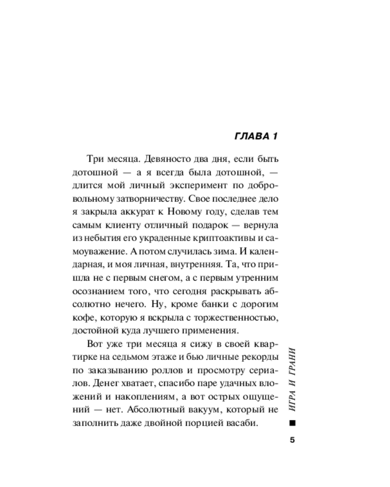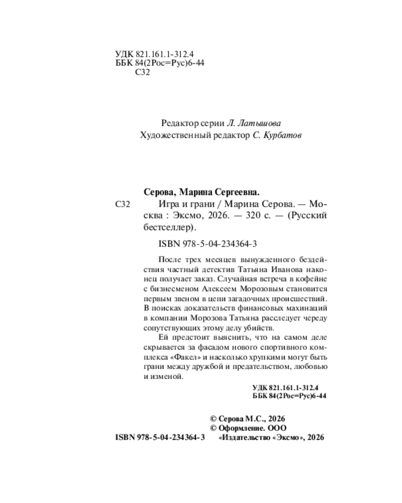 💳 Оплатить за товар можно при получении 🇰🇿 Есть бесплатная доставка по Казахстану от 1 дня 🎁 Копите бонусы с каждой покупки Серия: Русский бестселлер (обложка) После трех месяцев вынужденного бездействия из-за отсутствия заказов частный детектив Татьяна Иванова наконец решается выйти в люди. В кофейне она случайно знакомится с бизнесменом Алексеем Морозовым, который предлагает ей работу. Эта встреча становится первым звеном в цепи загадочных смертей. В поисках доказательств финансовых махинаций Иванова параллельно, по собственной инициативе, расследует череду сопутствующих этому делу убийств. |